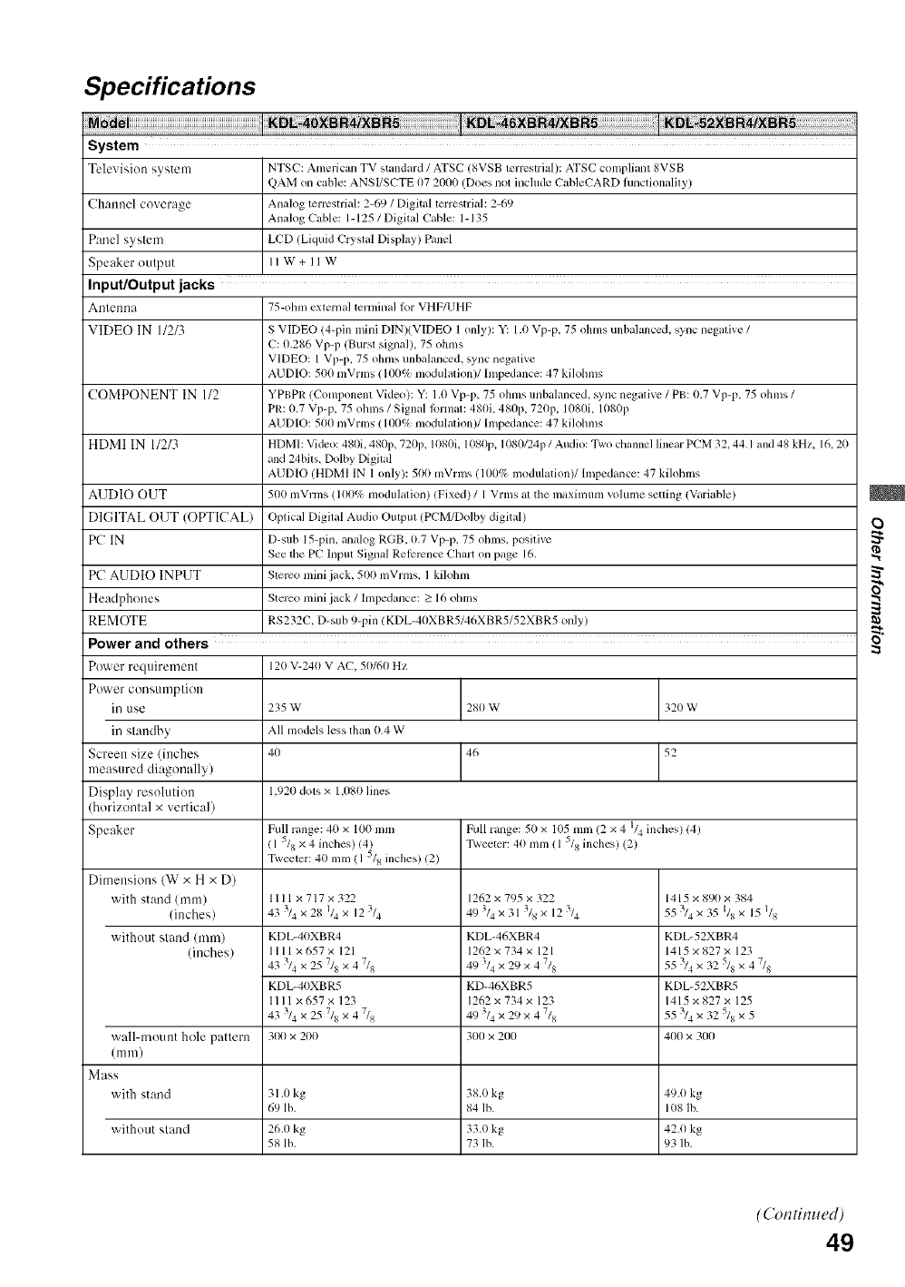 Sony KDL 40XBR4 User Manual LCD TELEVISION Manuals And Guides LR708011