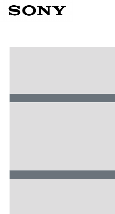 Sony, X-Reality, Motionow, TV SideView and the Sony logo are trademarks of Sony Corporation. PlayStation is a trademark of Sony Computer Entertainment Inc. registered in the U.S.
