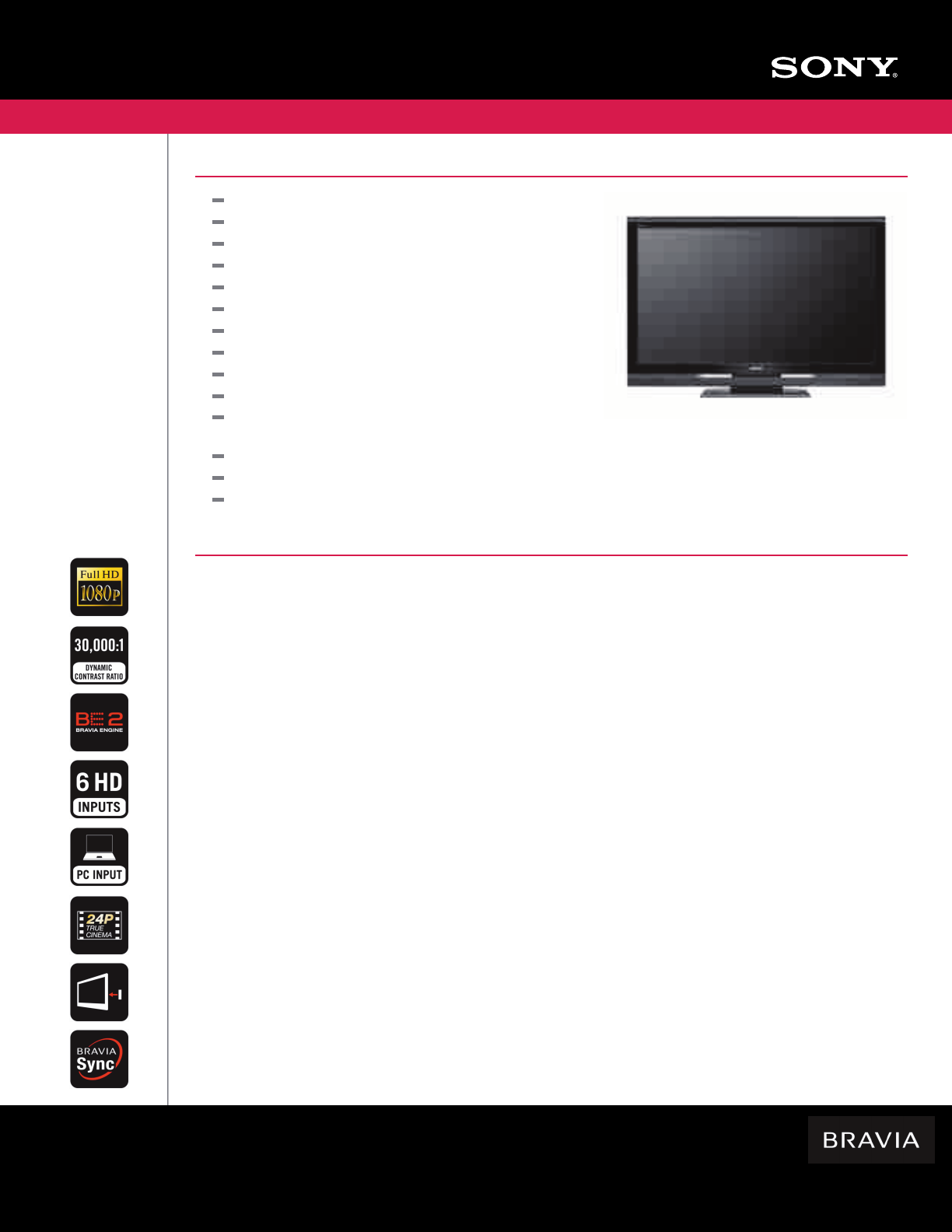 Sony KDL 52S5100 User Manual Marketing Specifications KDL52S5100 Mksp