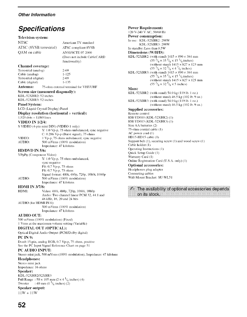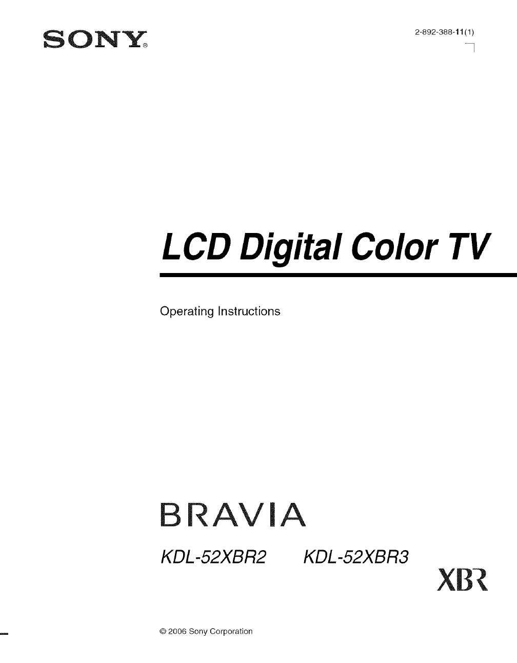 User Manual: Sony KDL-52XBR2 KDL-52XBR2 SONY LCD TELEVISION - Manuals and Guides View the owners manual for your SONY LCD TELEVISION #KDL52XBR2. Home:Electronics Parts:Sony Parts:Sony LCD TELEVISION Manual