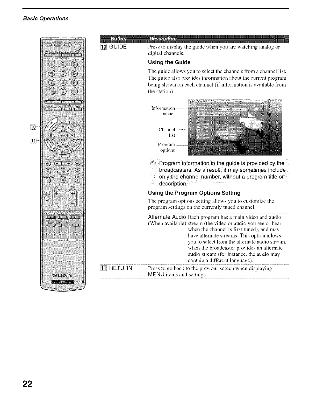 RETURN button 22