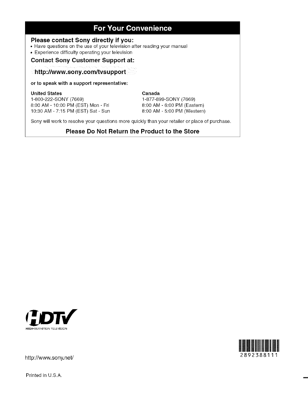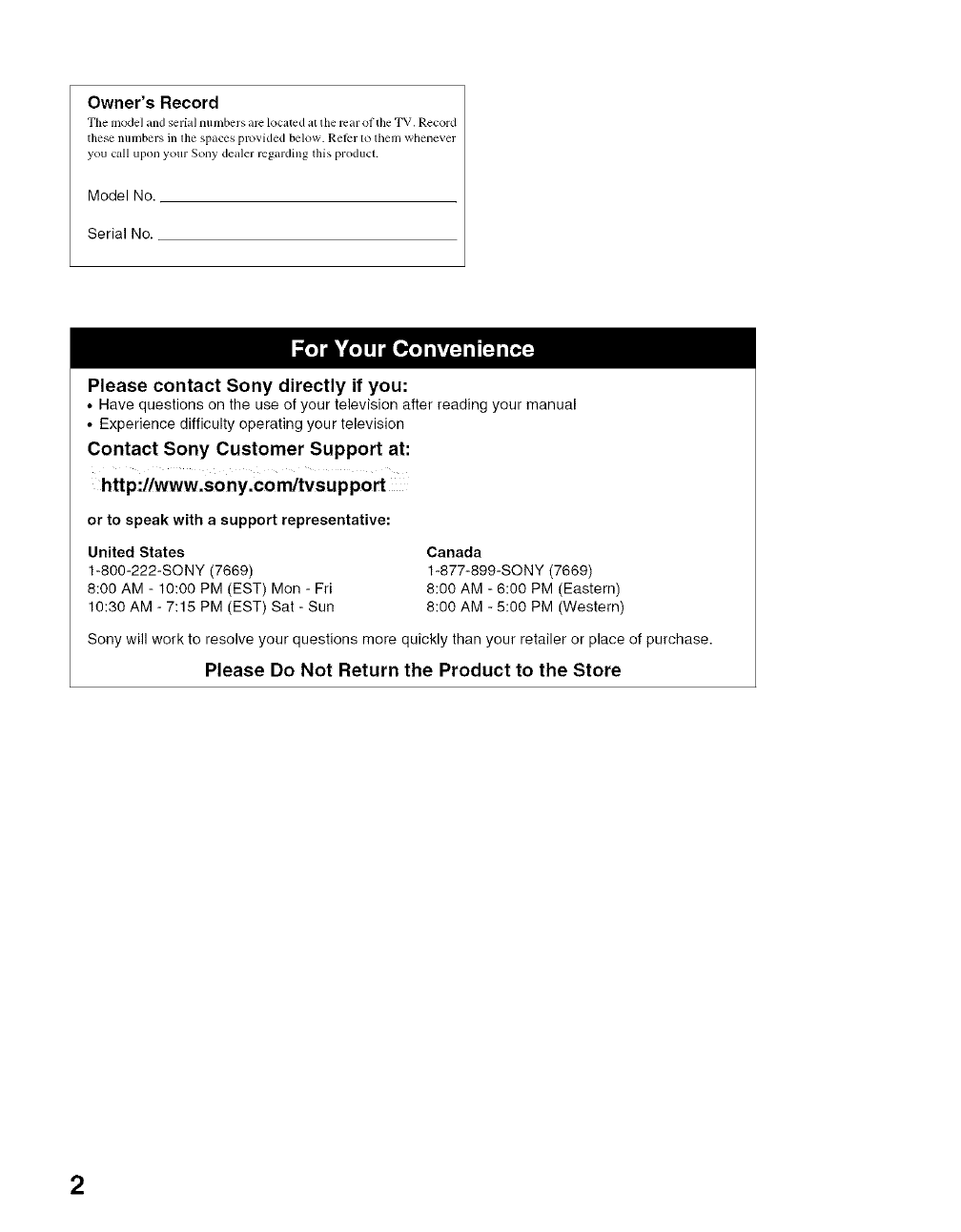 Sony will work to resolveyour questions more quickly than your retailer or place of purchase.