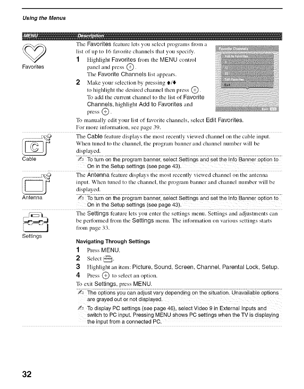 Settings 32