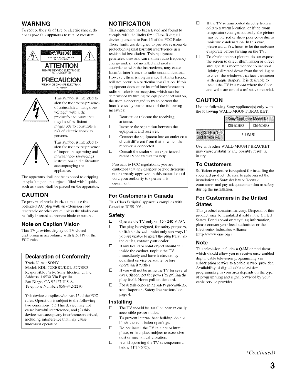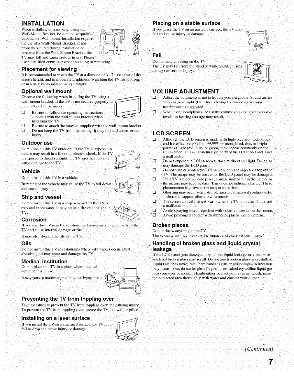 SONY LCD Television Manual L0705130 SONY LCD Television Owner's Manual, SONY LCD Television installation guides
