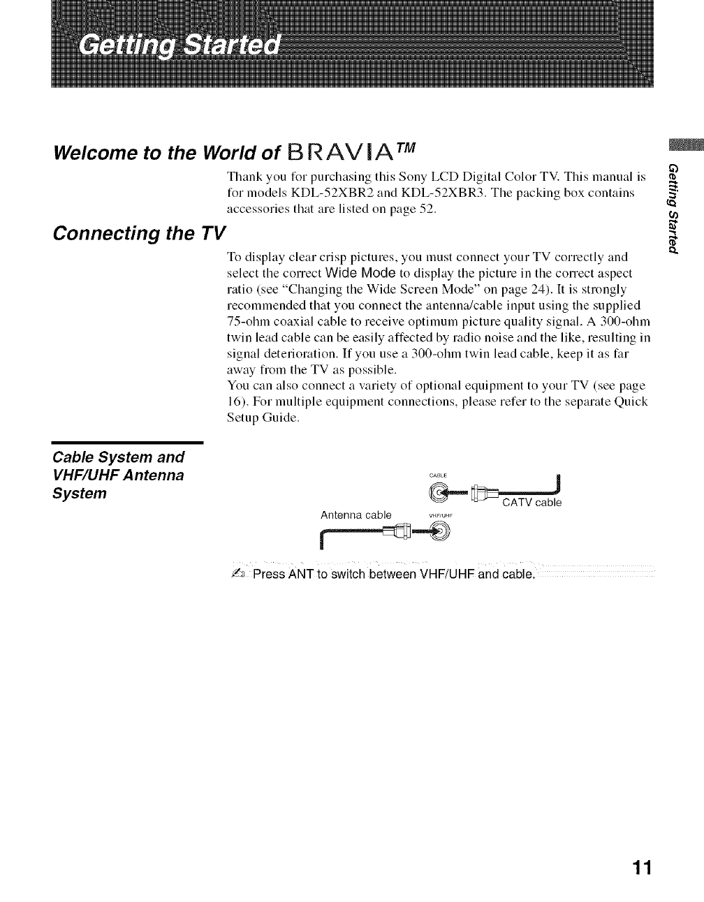 Sony KDL 52XBR2 User Manual LCD TELEVISION Manuals And Guides L0705130