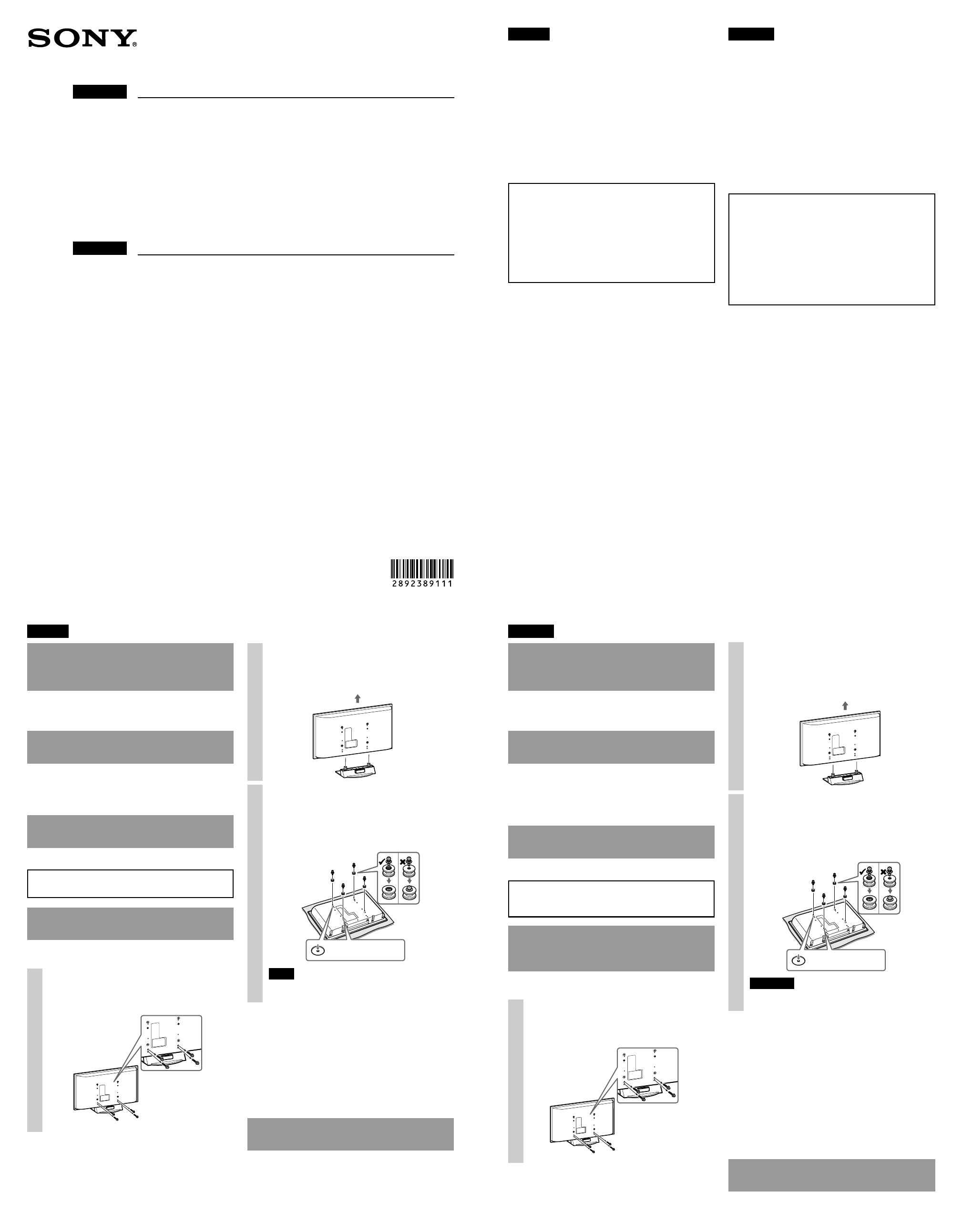 mounting of your TV be performed by Sony dealers or licensed contractors. Do not