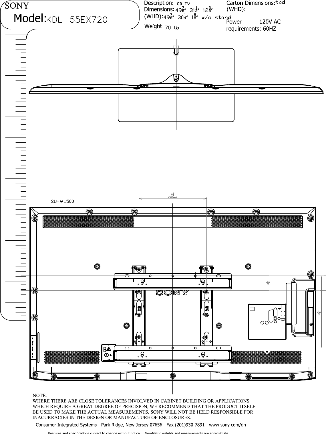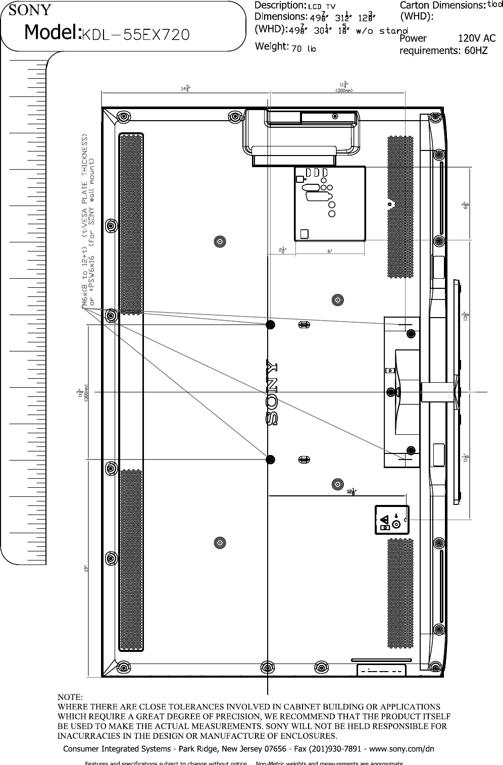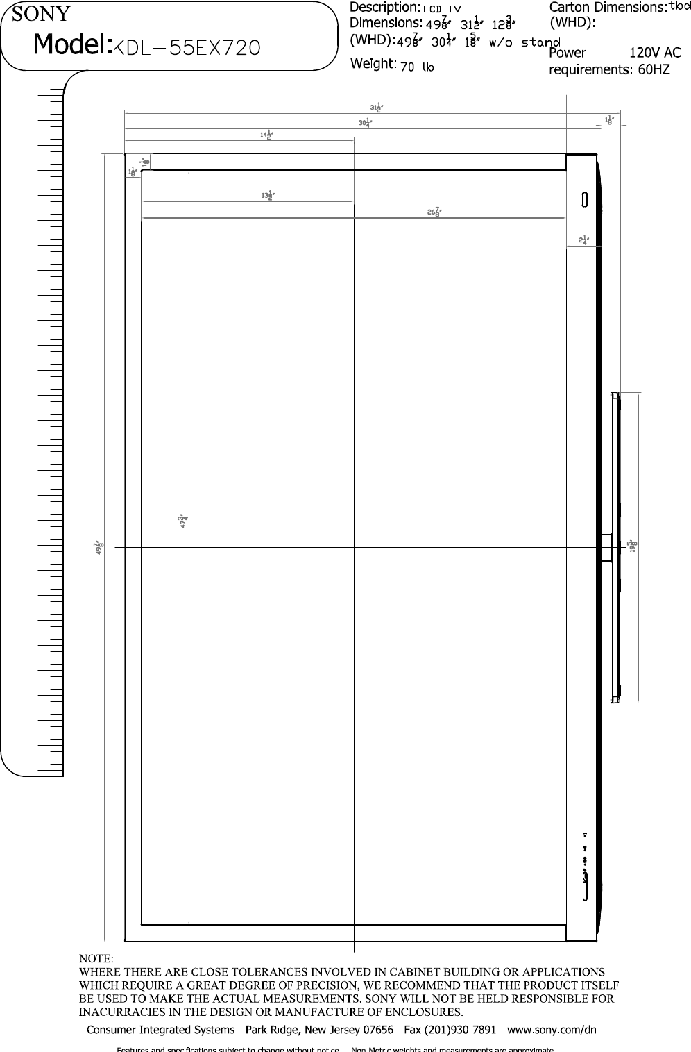 Sony KDL 55EX720 KDL55EX720 Layout1 User Manual Dimensions Diagram Cutsheet