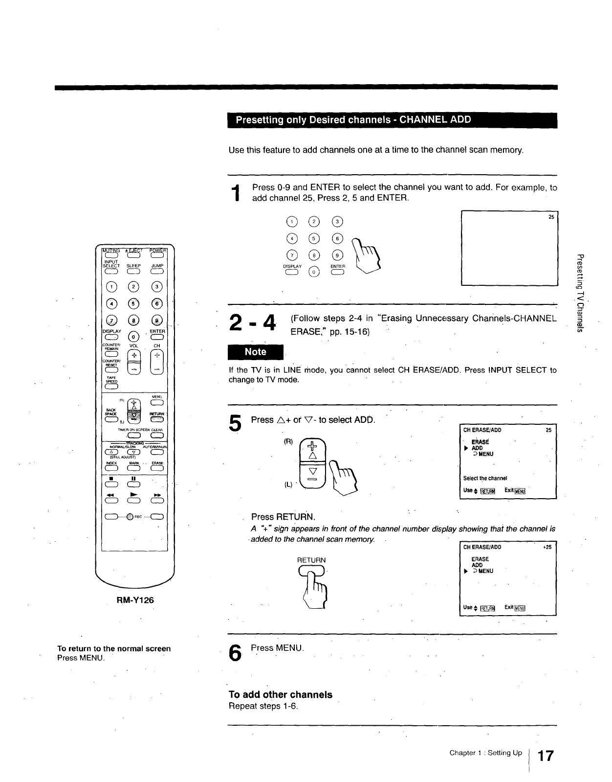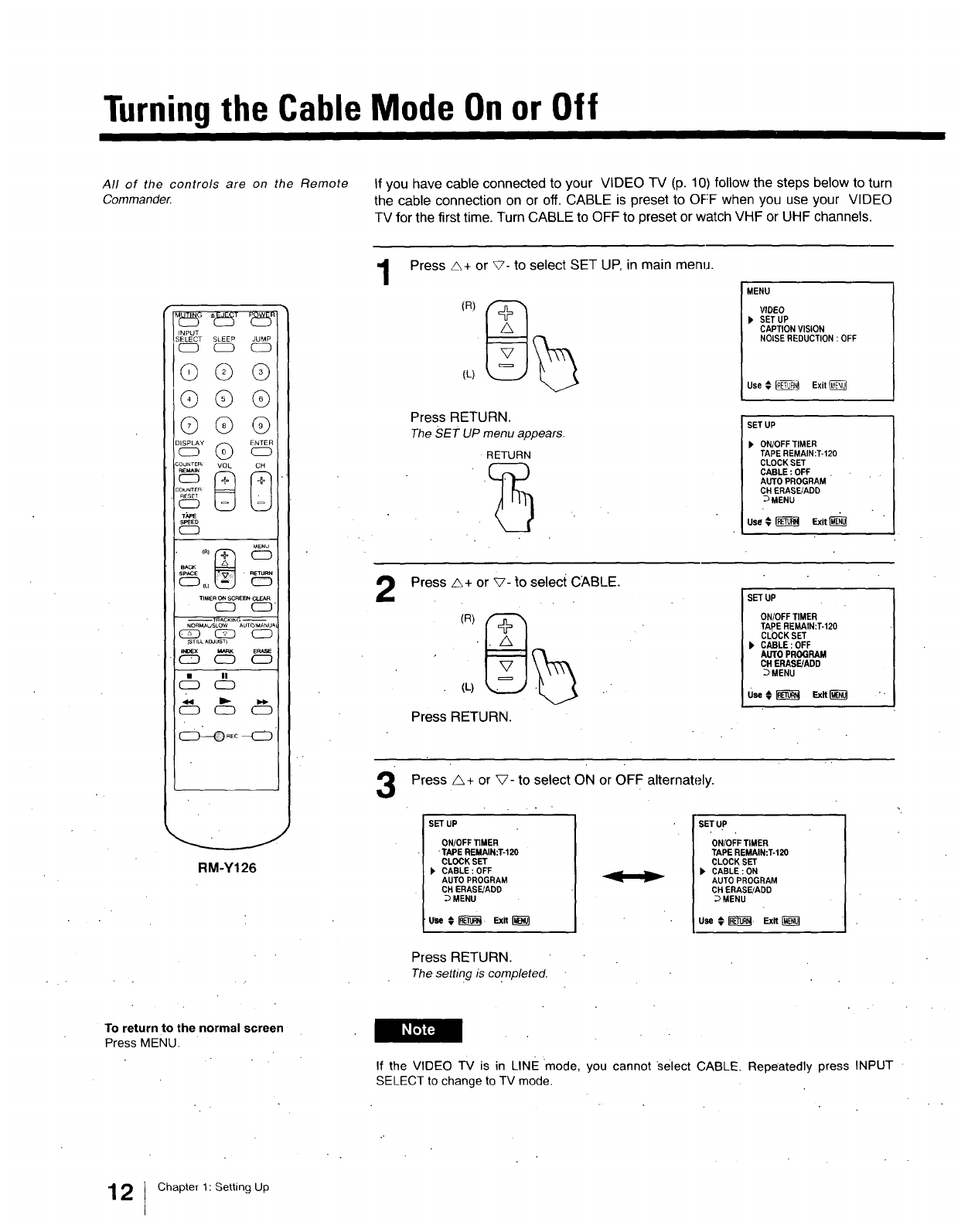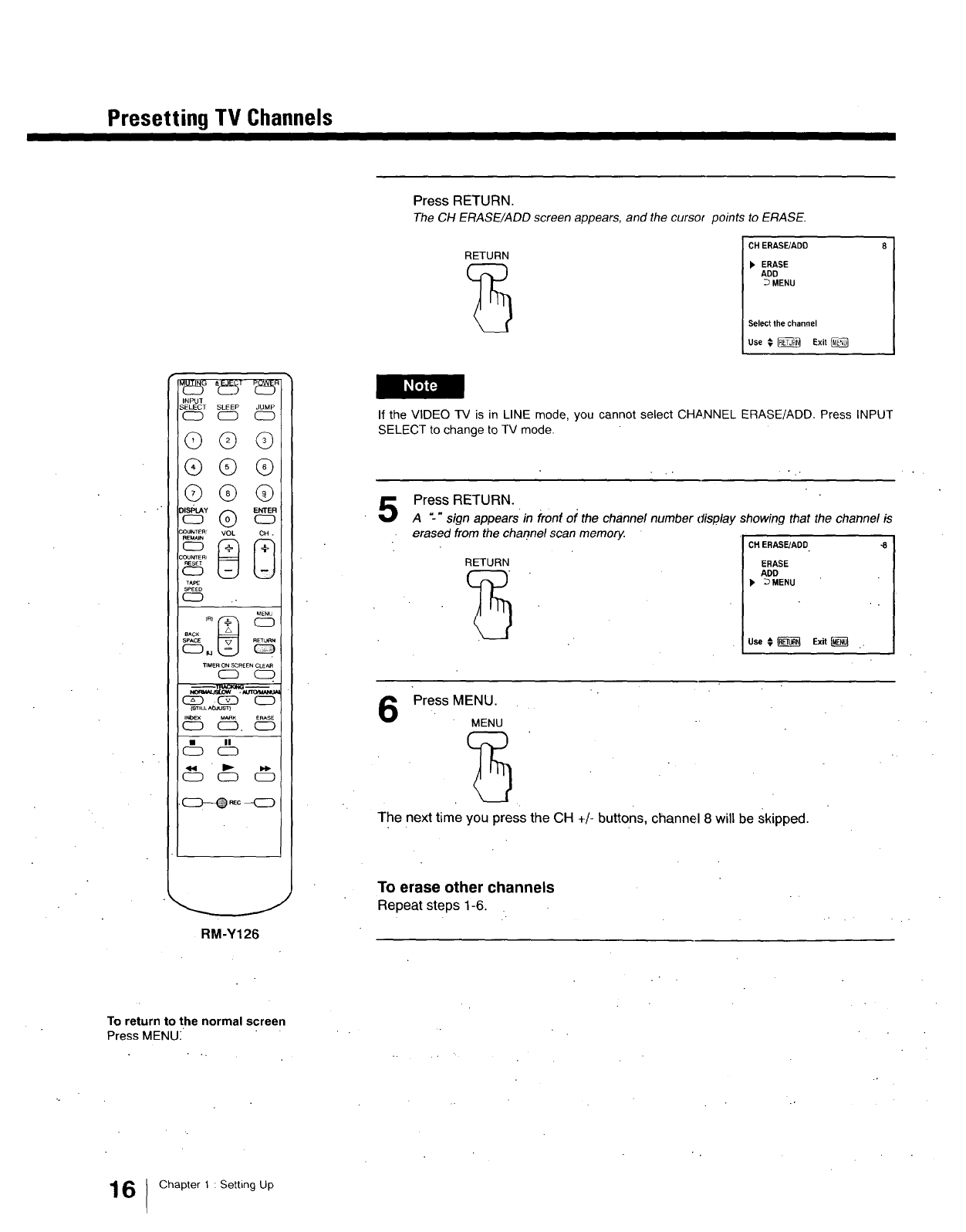 rear of the VIDEO TV. Record these numbers in the