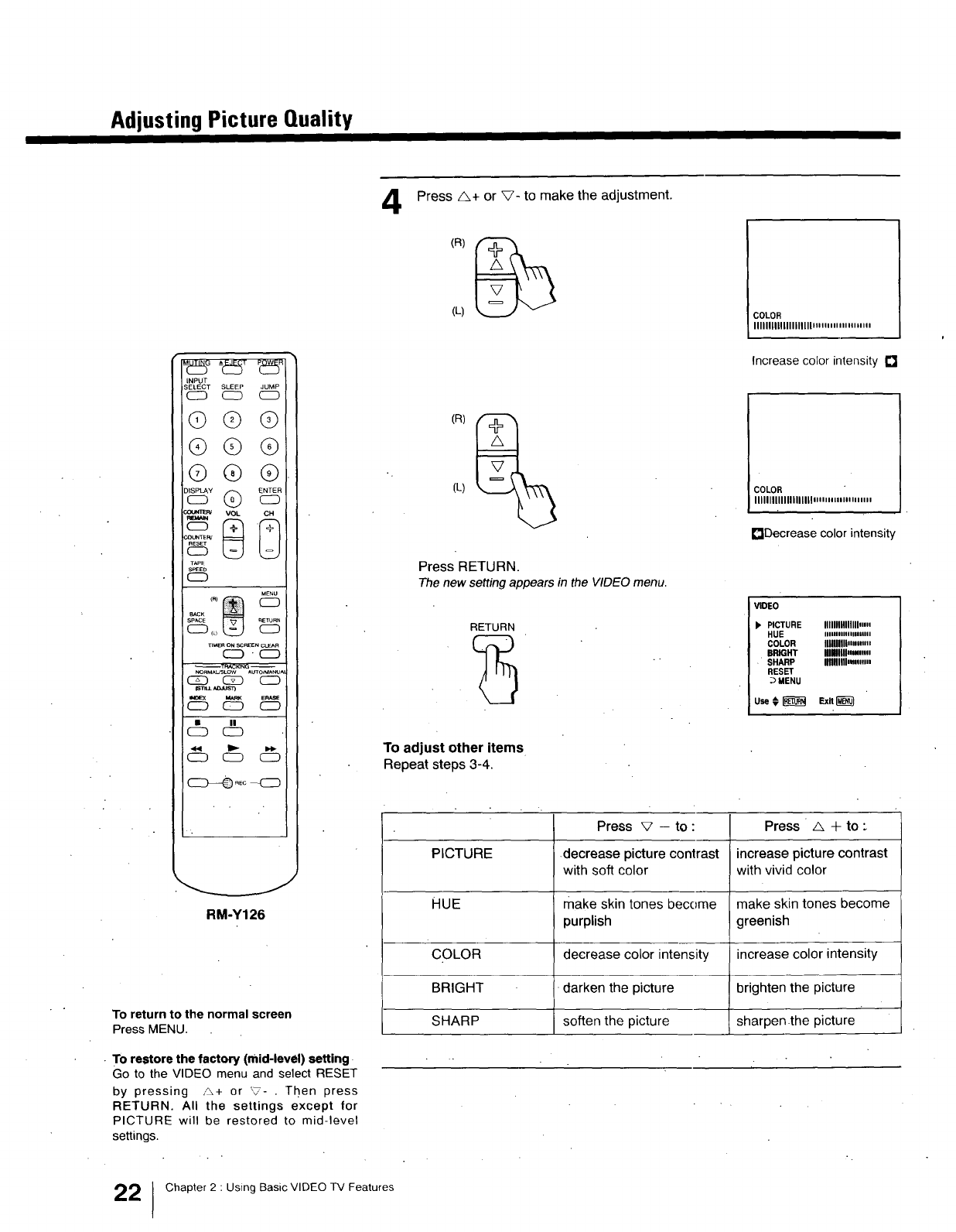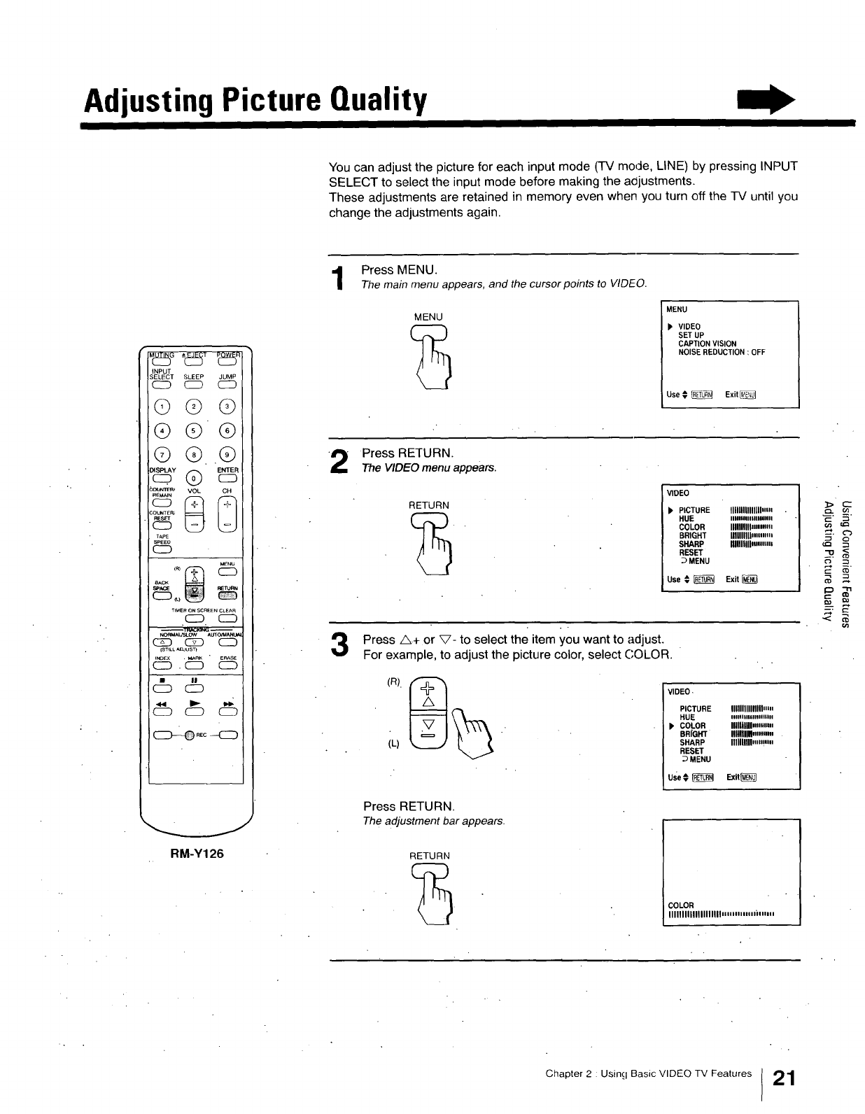 about operating and adjusting your VIDEO