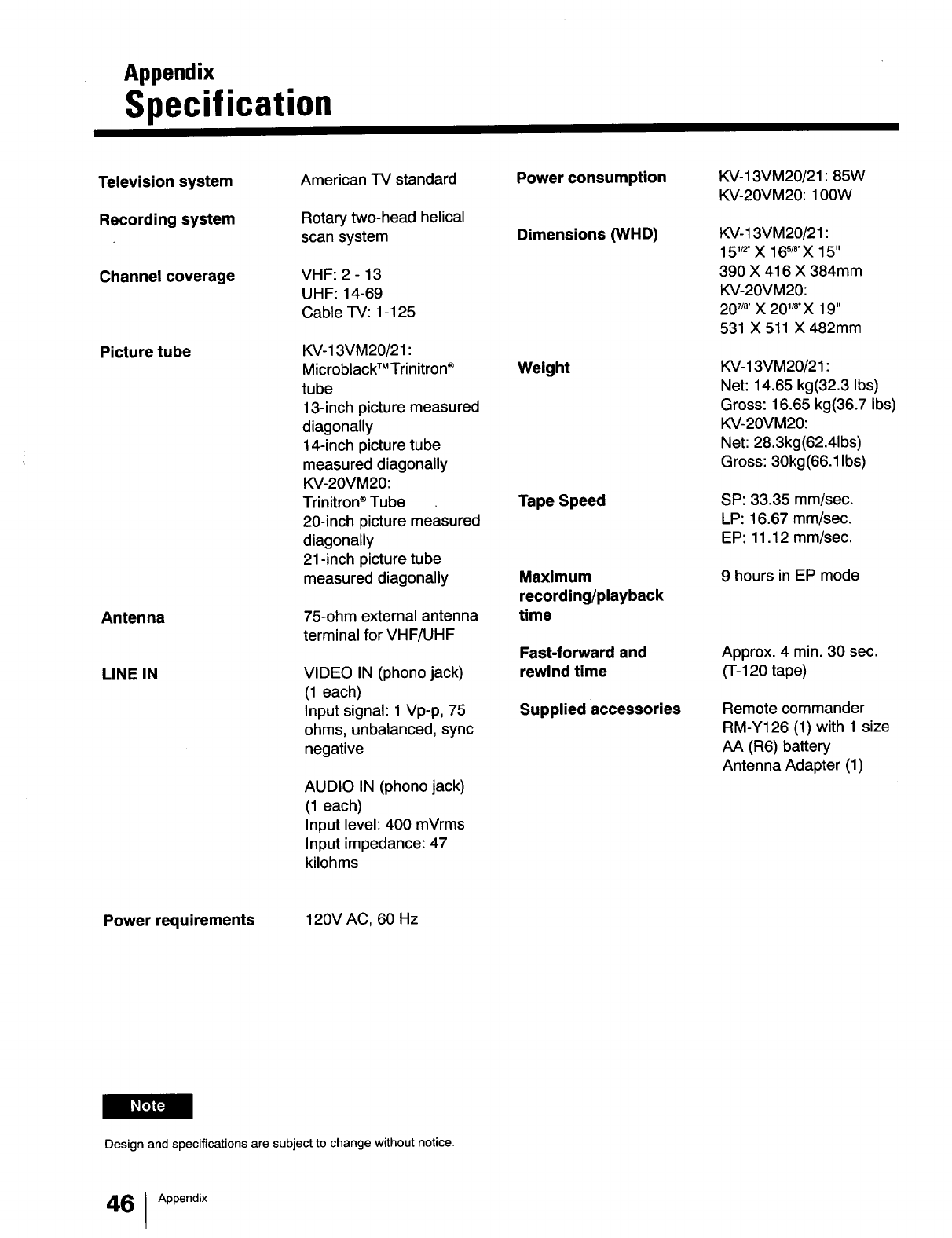 KV-13VM20/21 : 85W