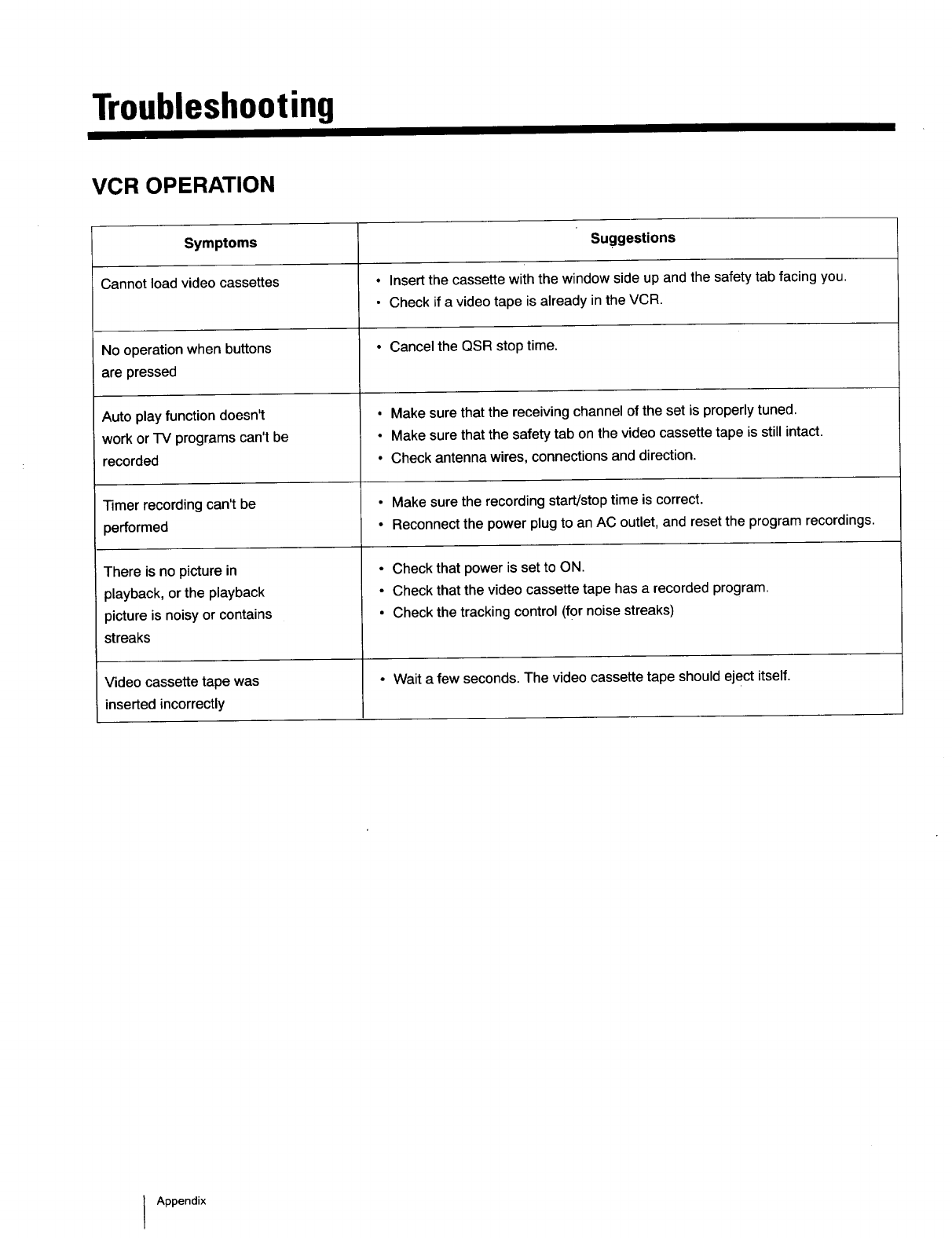 • Check that the video cassette tape has a recorded program.