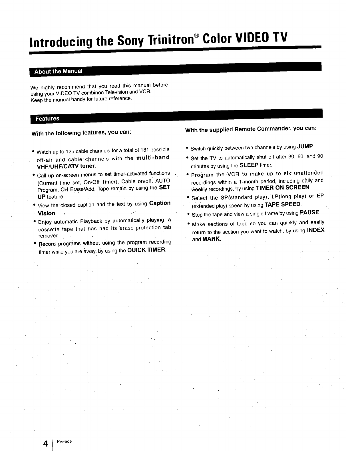 Before operating your VIDEO IV, please read this