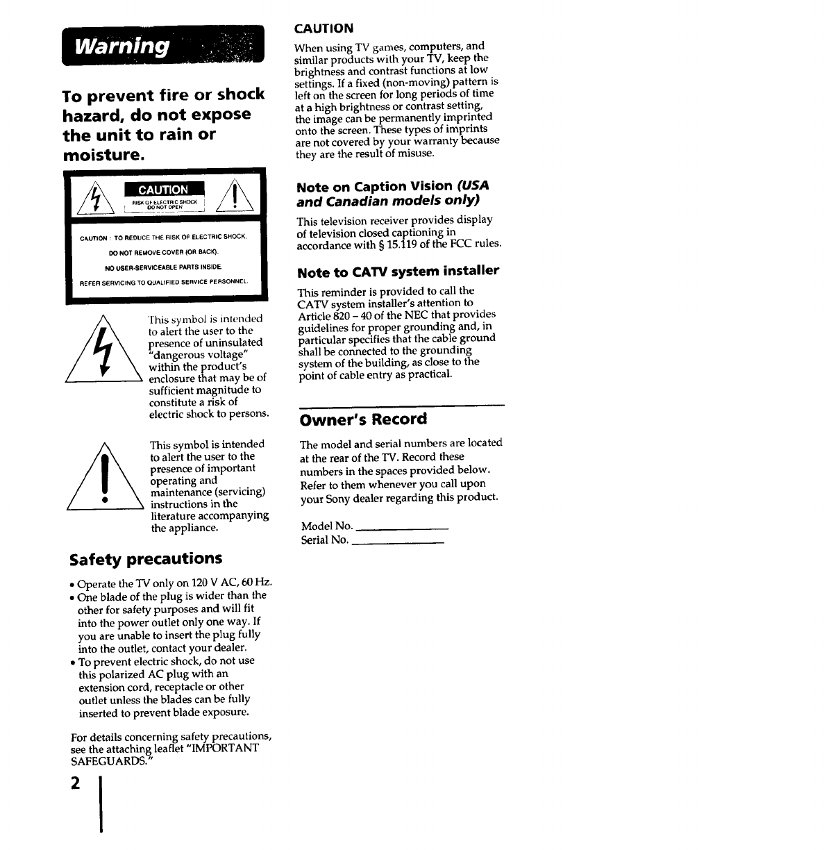 SONY Direct View Digital 27 to 40 TV Manual 97090121 SONY Direct View Digital 27 to 40 TV Owner's Manual, SONY Direct View Digital 27 to 40 TV installation guides