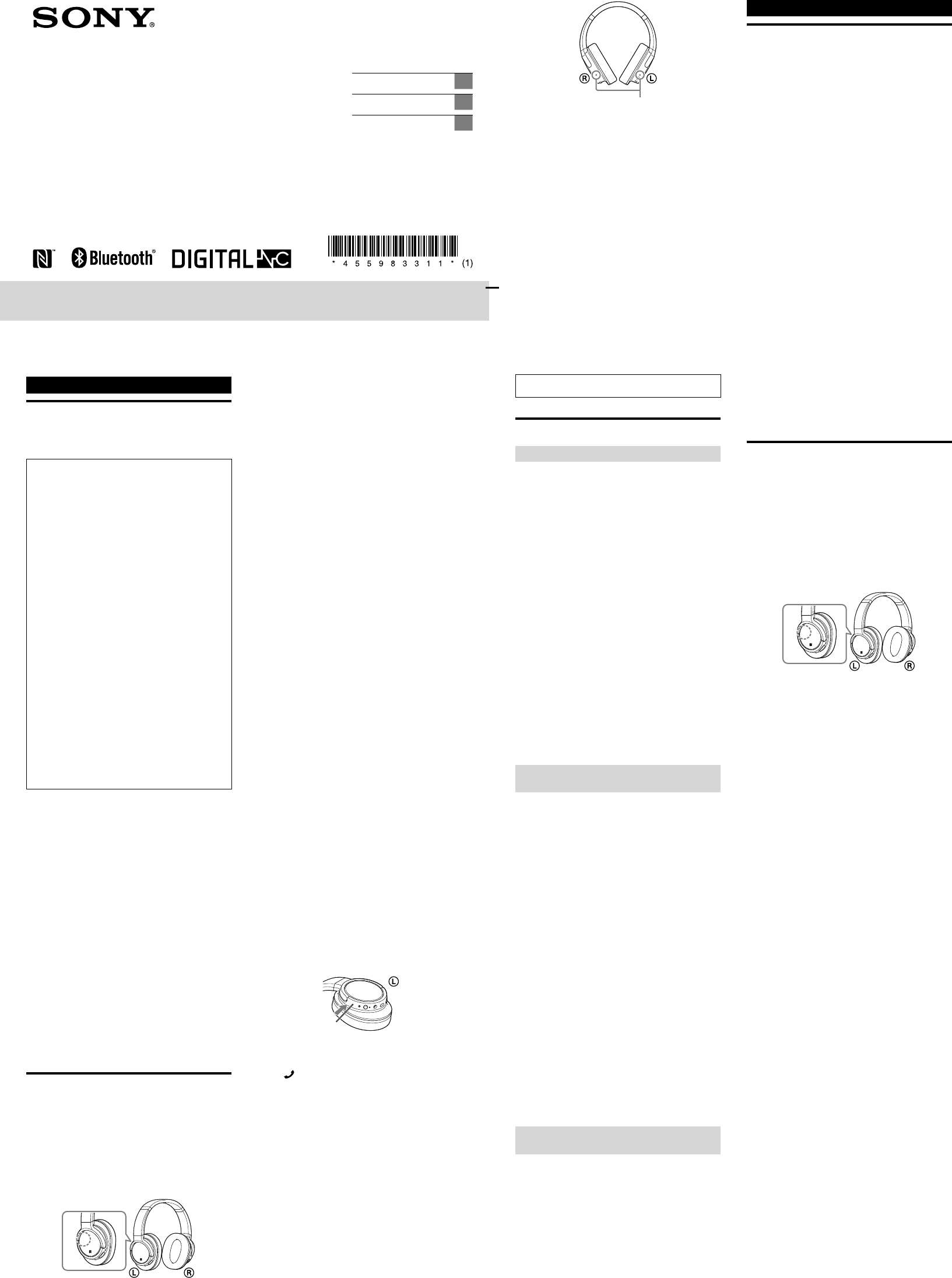 Sony MDR ZX770BN User Manual Reference Guide MDRZX770BN Ref EN ES FR