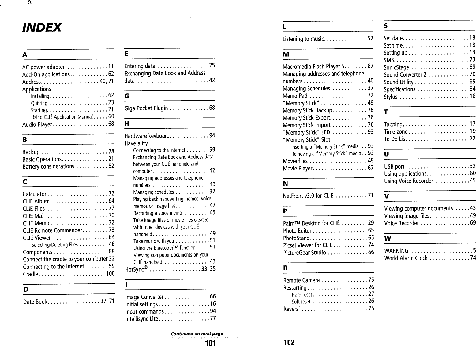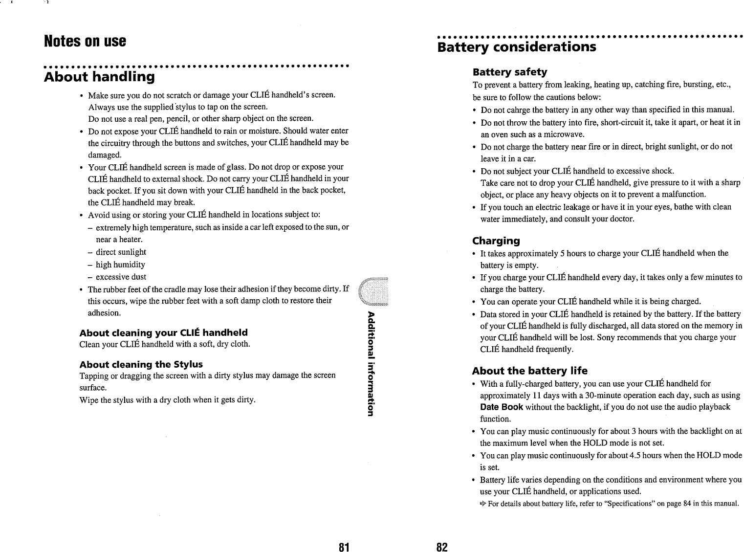 Sony Corporation Personal Entertainment Organizer with Bluetooth Revised manual part 3 IAW FCC correspondence 7093