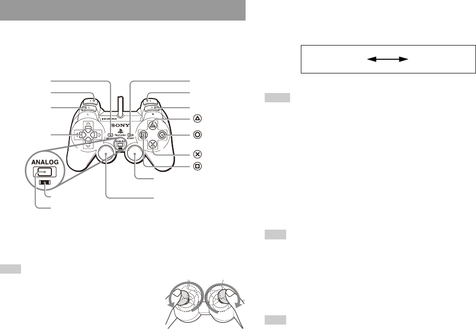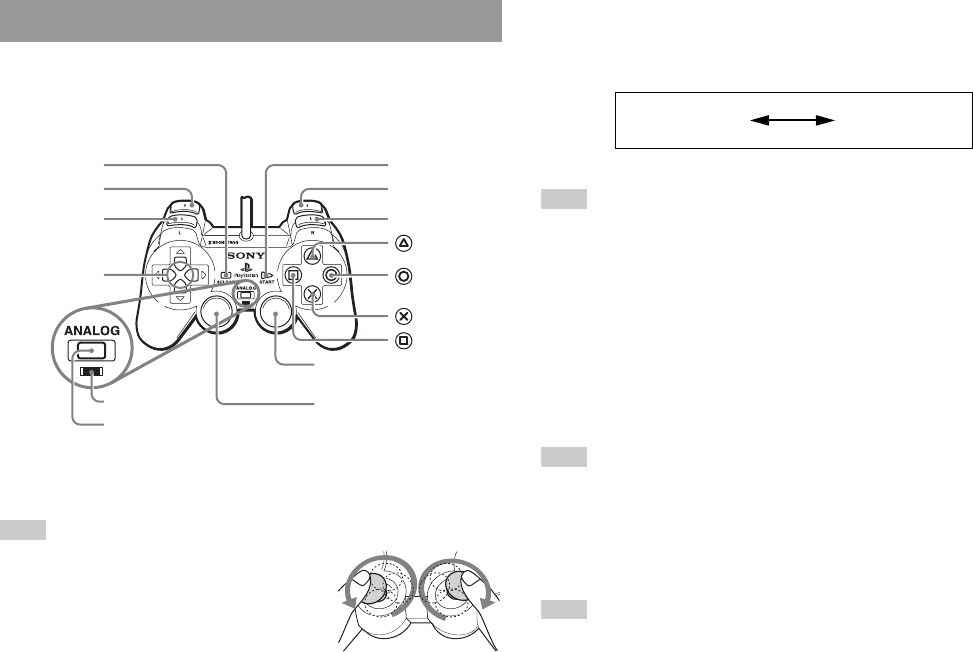 For part names of the analog controller (DUALSHOCK®2), see "Using the analog