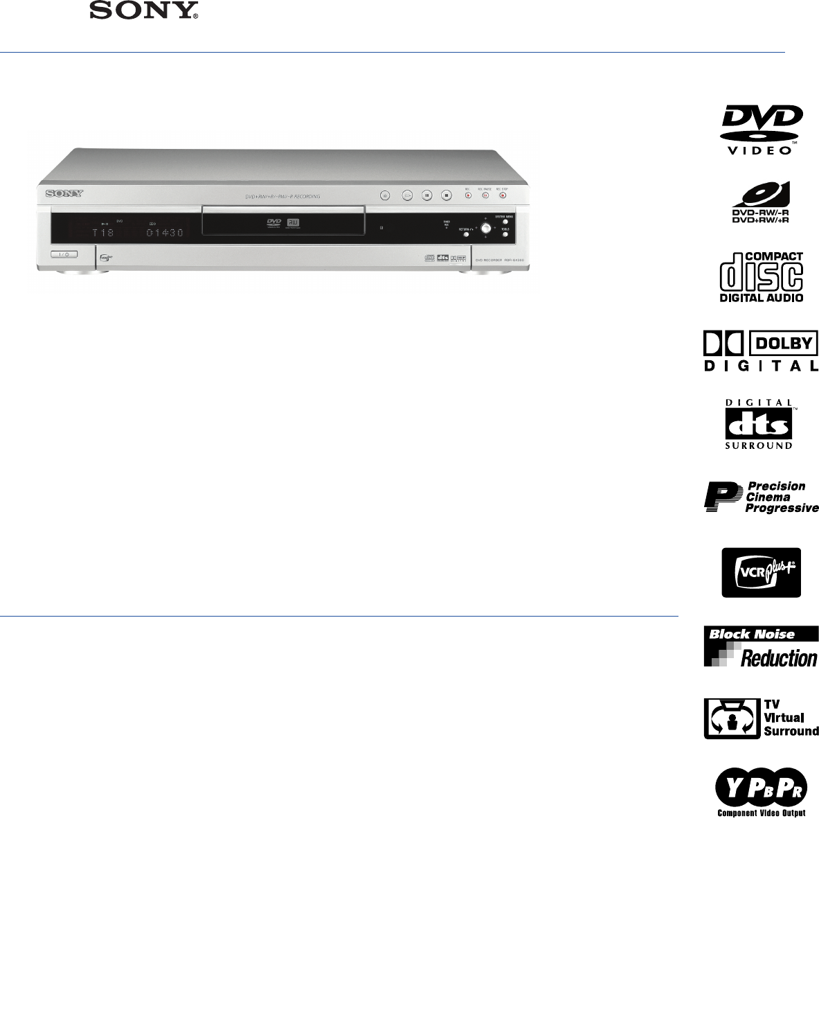 User Manual: Sony RDR-GX300 Marketing Specifications