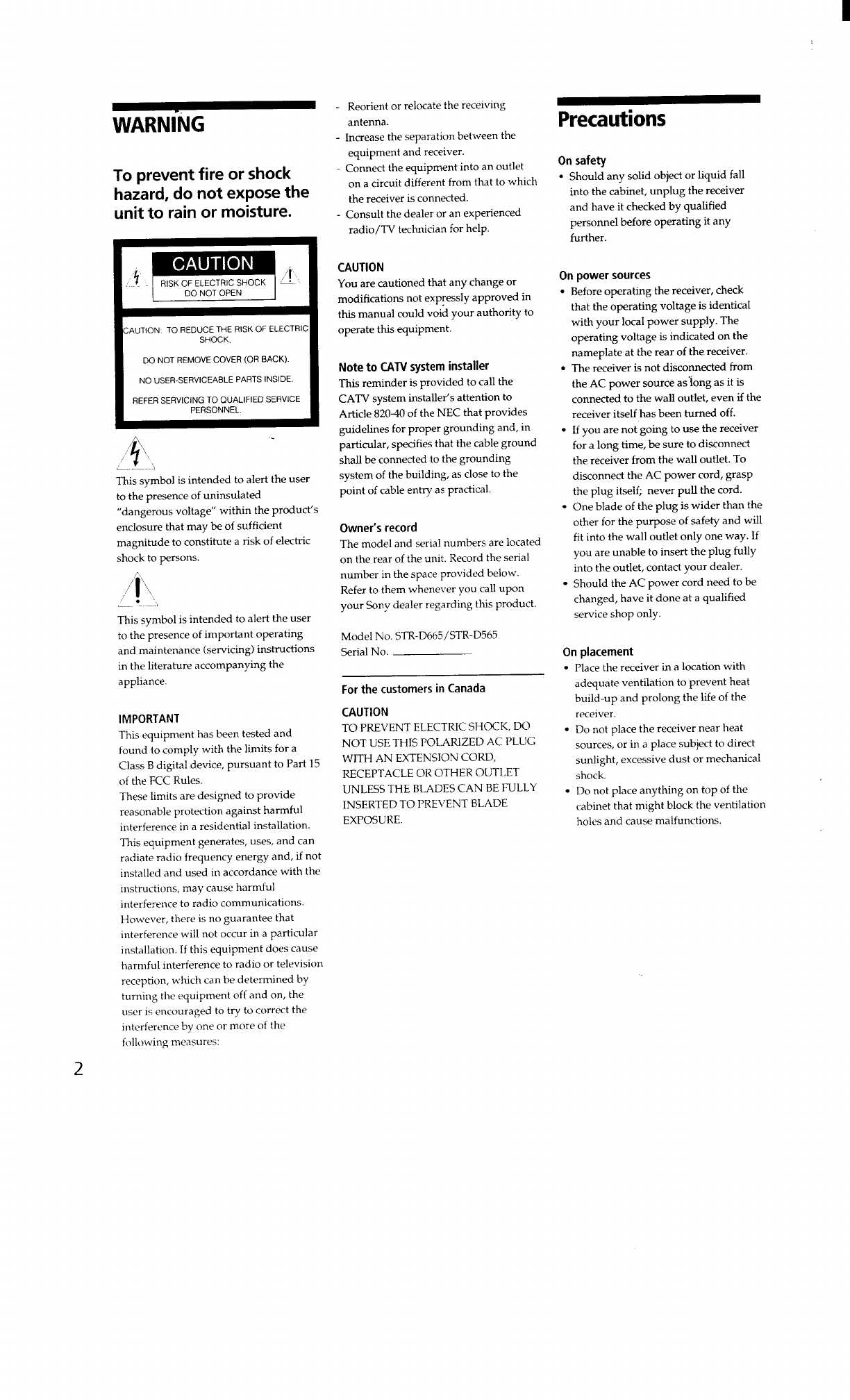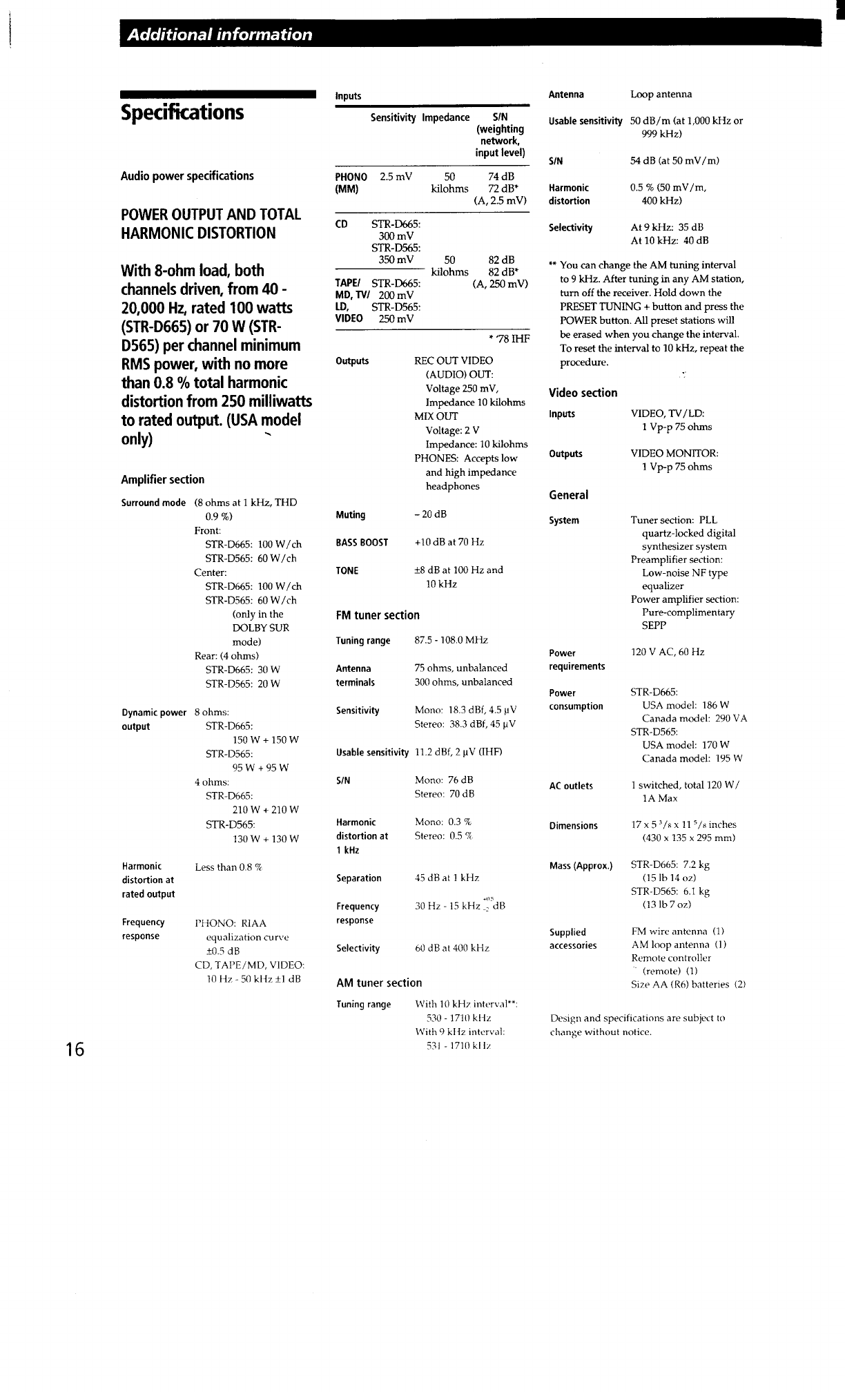 User manual STRD665 Sony STR-D565 Hifi Receiver User Manuals and Instruction Guides