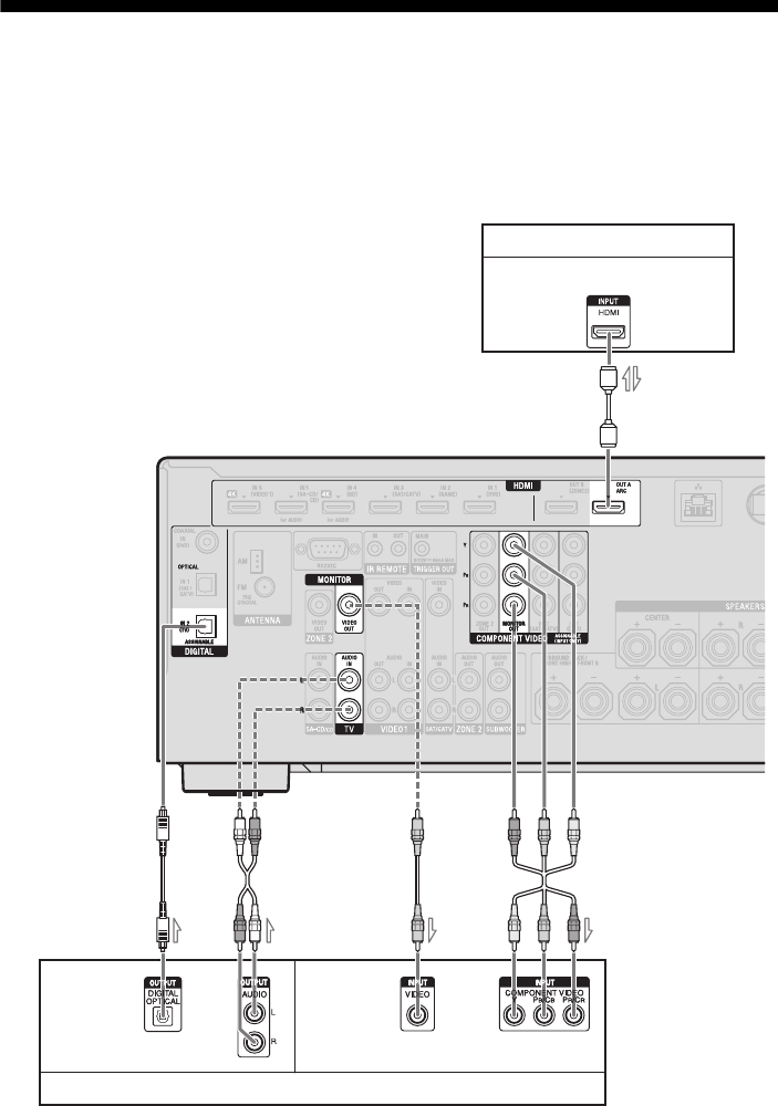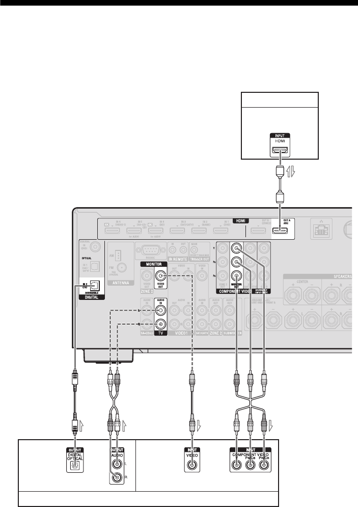 - Enjoying the TV sound from the speakers connected to the receiver via HDMI OUT A jack (Audio Return Channel)
