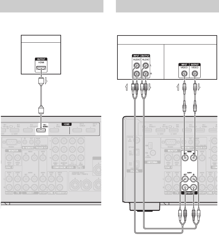 - Écouter le son du téléviseur émis par les enceintes raccordées à l’ampli-tuner via la prise HDMI OUT A (Audio Return Channel)