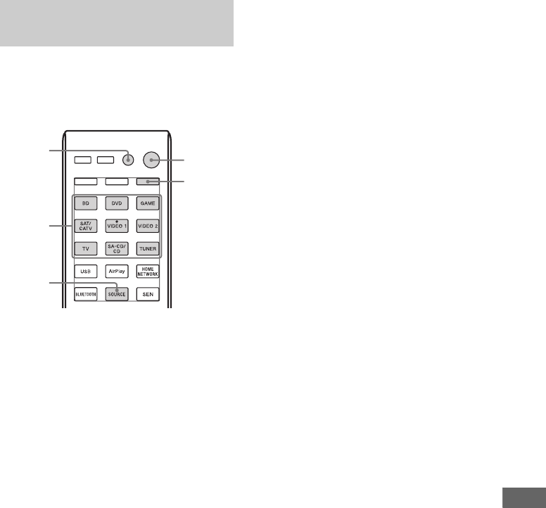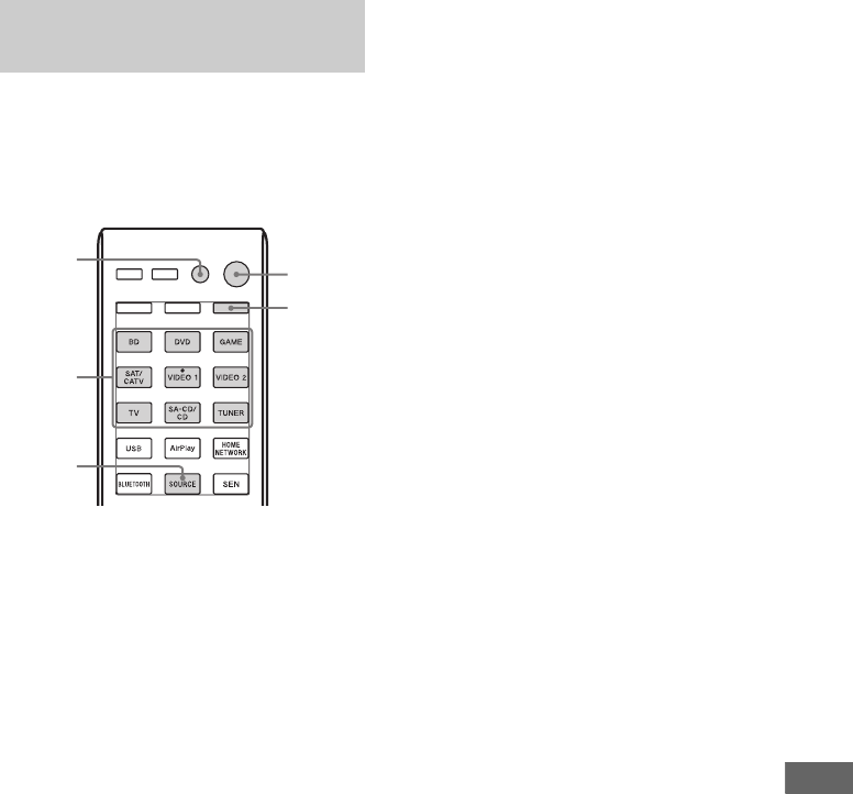- Écouter le son du téléviseur émis par les enceintes raccordées à l’ampli-tuner (Commande du son du système)