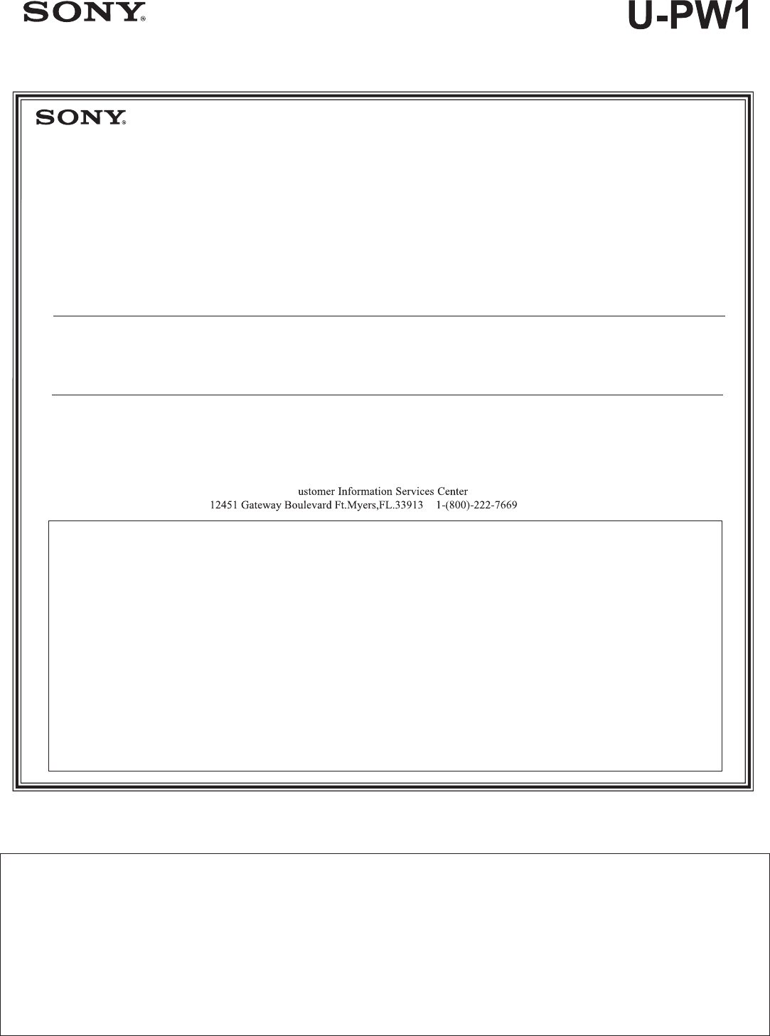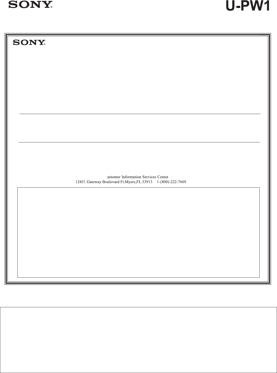 Sony SU PW1 User Manual Instructions (primary Manual) SUPW1