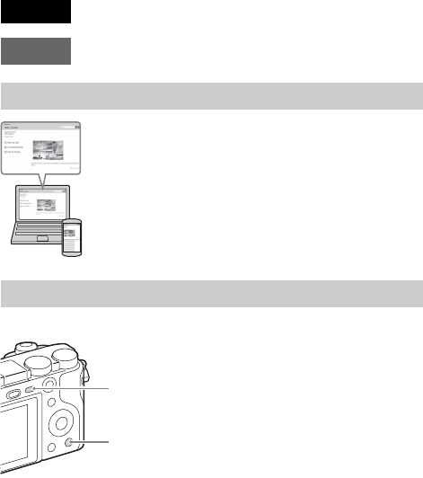 - Learning more about the camera (“Help Guide”)