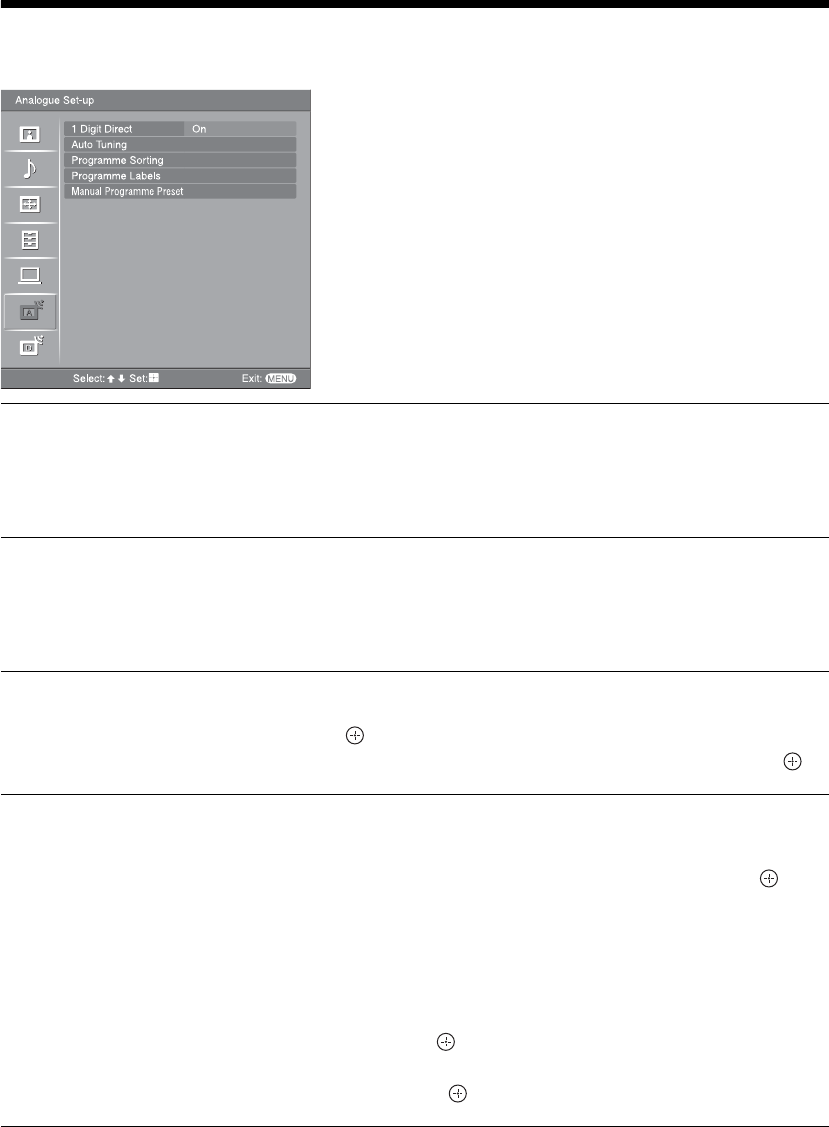 Analogue Set-up menu (Analogue mode only) .......................................................................28