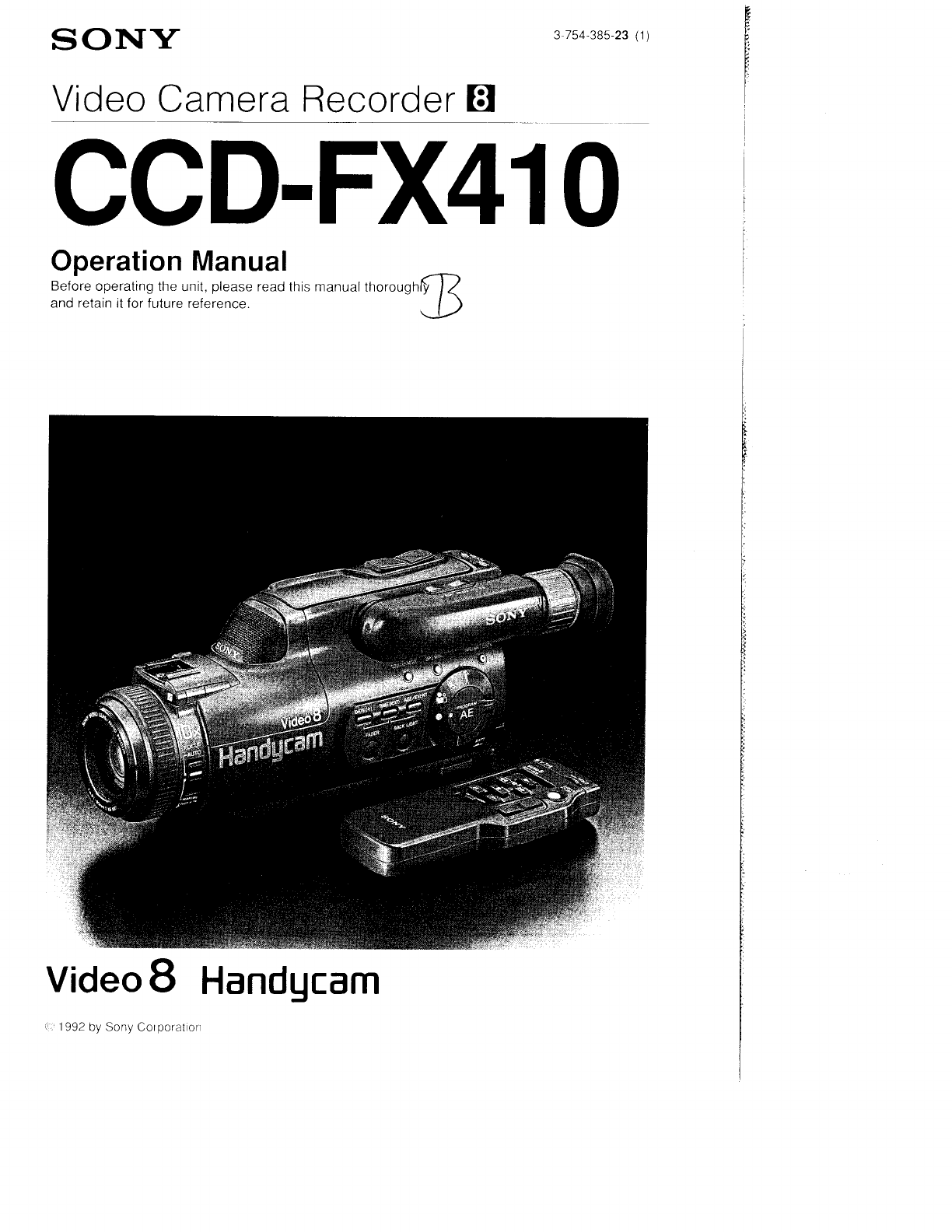 User manual CCDFX410 Sony Video 8 Camcorder CCD-FX410 user guide User Manuals and Instruction Guides