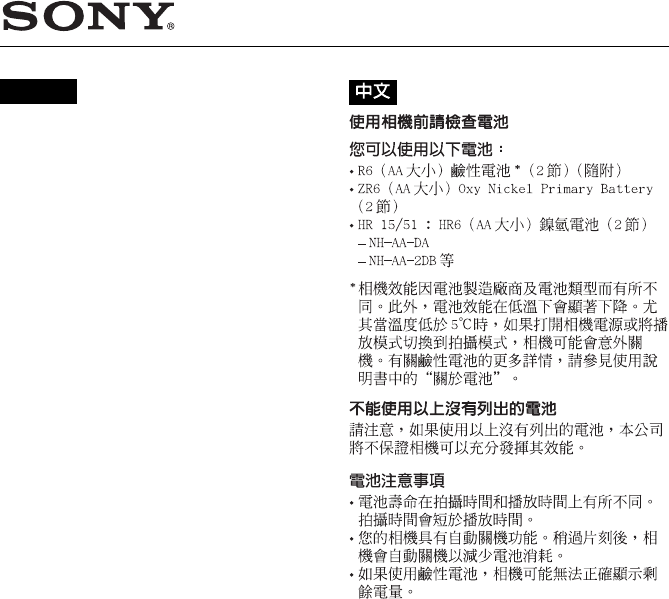 DSC-S40 Notes on battery use DSCS40battnote
