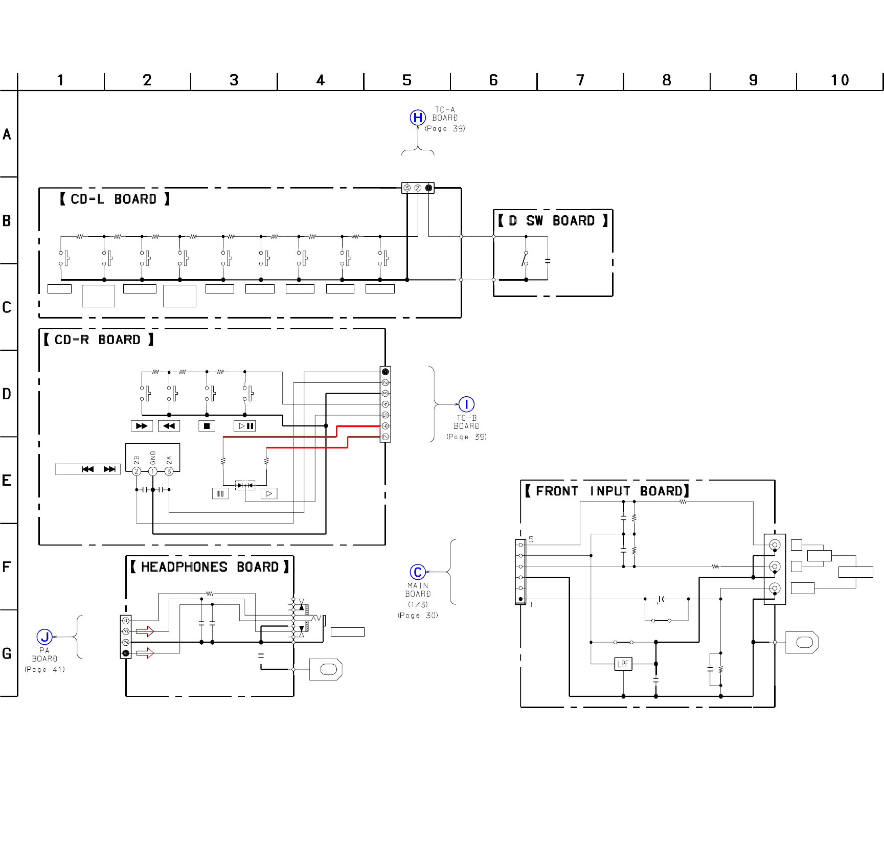 - 6-14. SCHEMATIC DIAGRAM – CD-L, CD-R, HEADPHONE, FRONT INPUT, D-SW SECTION –