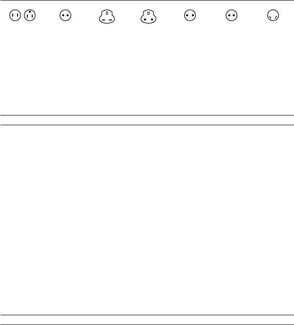 Representative plug of power supply cord of countries/regions around the