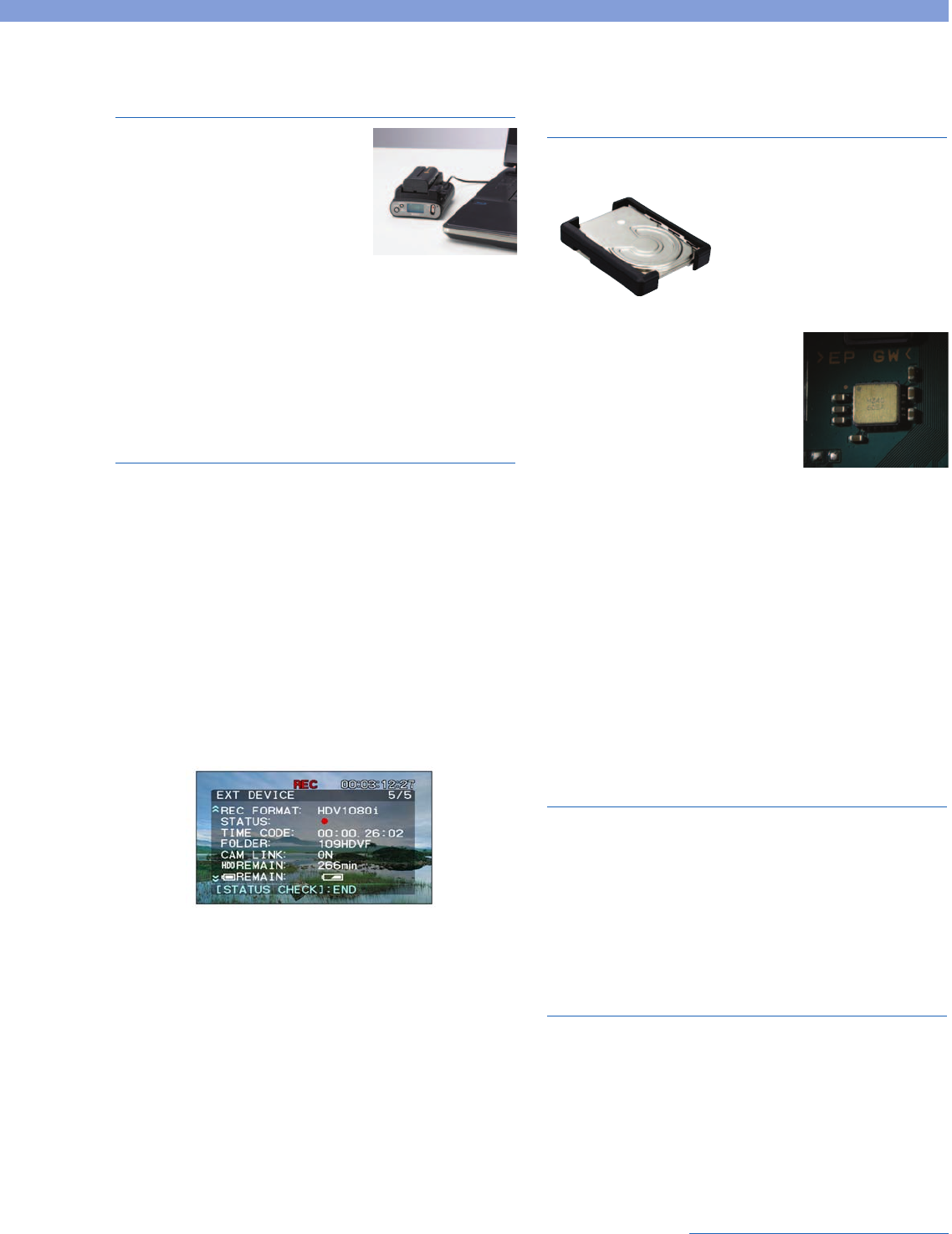 to tape and hard disk. After a shoot is complete, simply connecting the HVR-DR60 to a