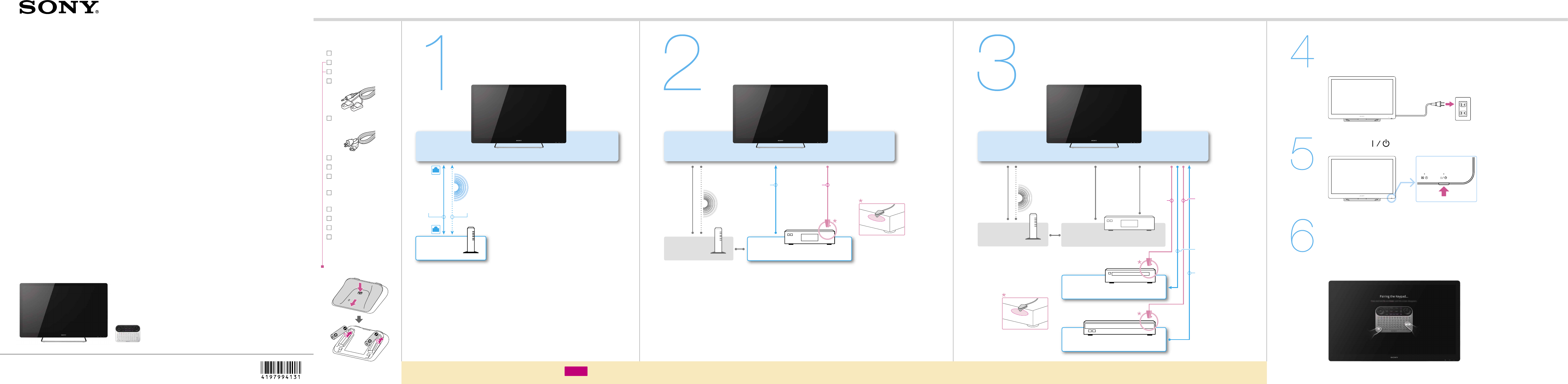 Note If your connection method differs from that shown above, see “Help Guide” (http://esupport.sony.com/internettv/helpguide/). For details on “Help Guide,” see the back side.