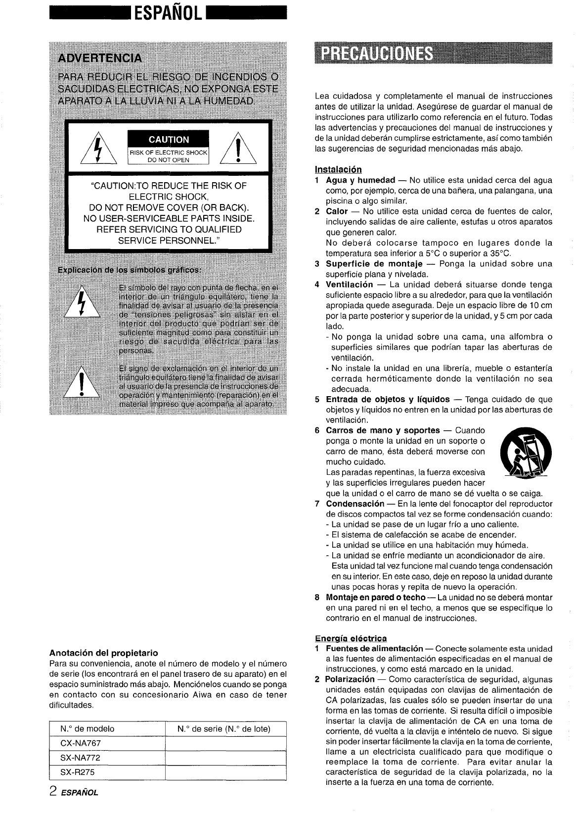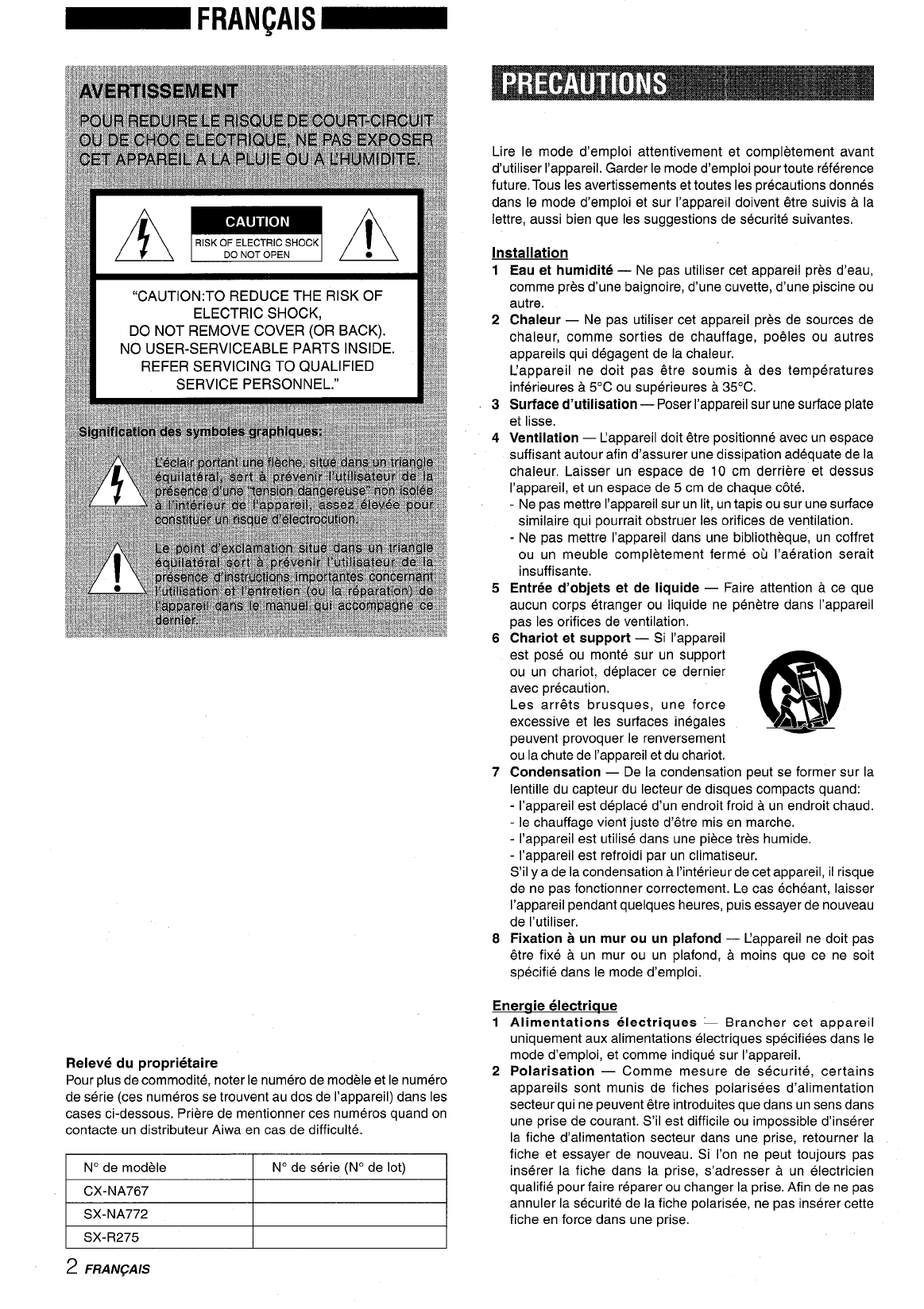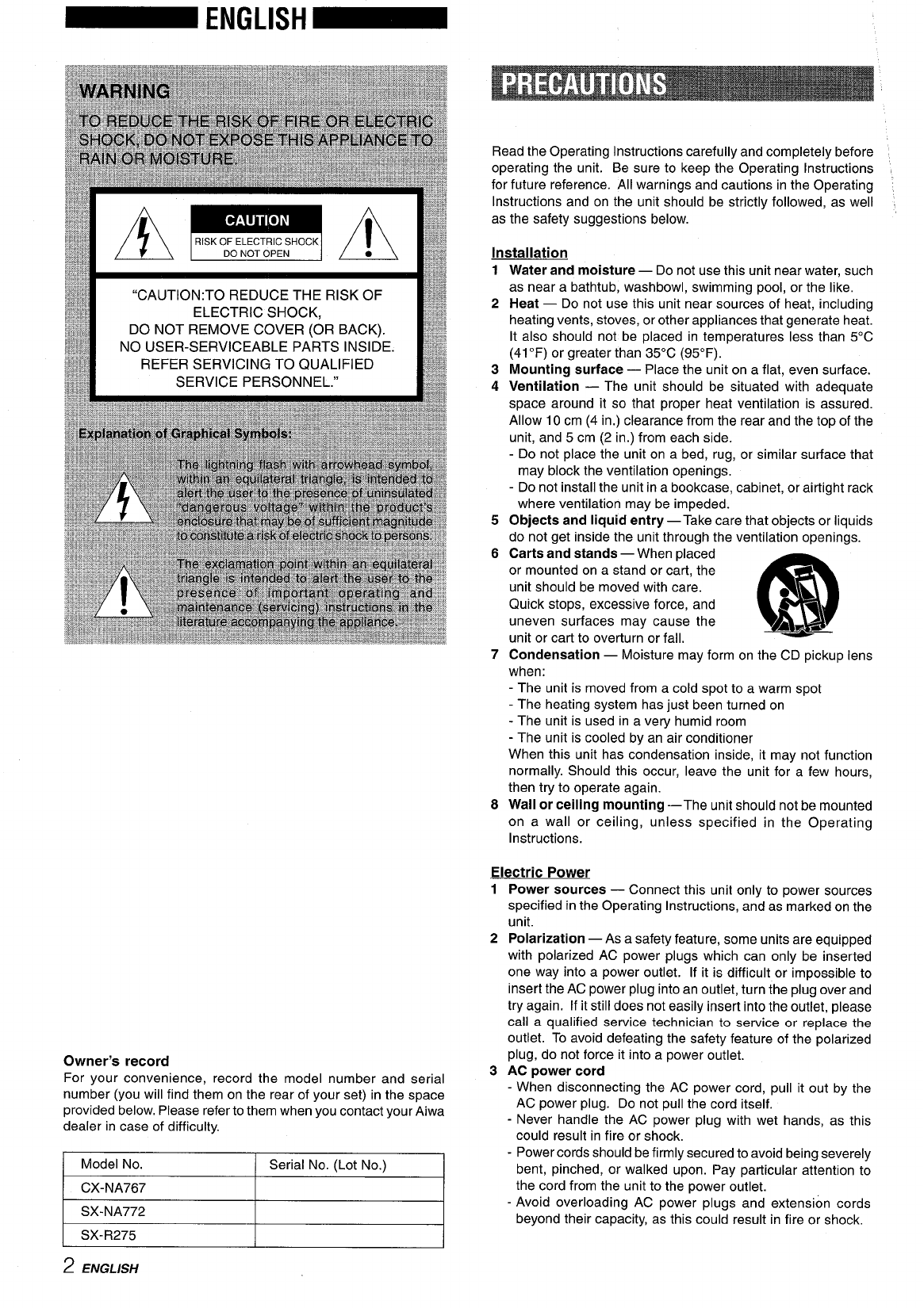 provided below, Please refer to them when you contact your Aiwa