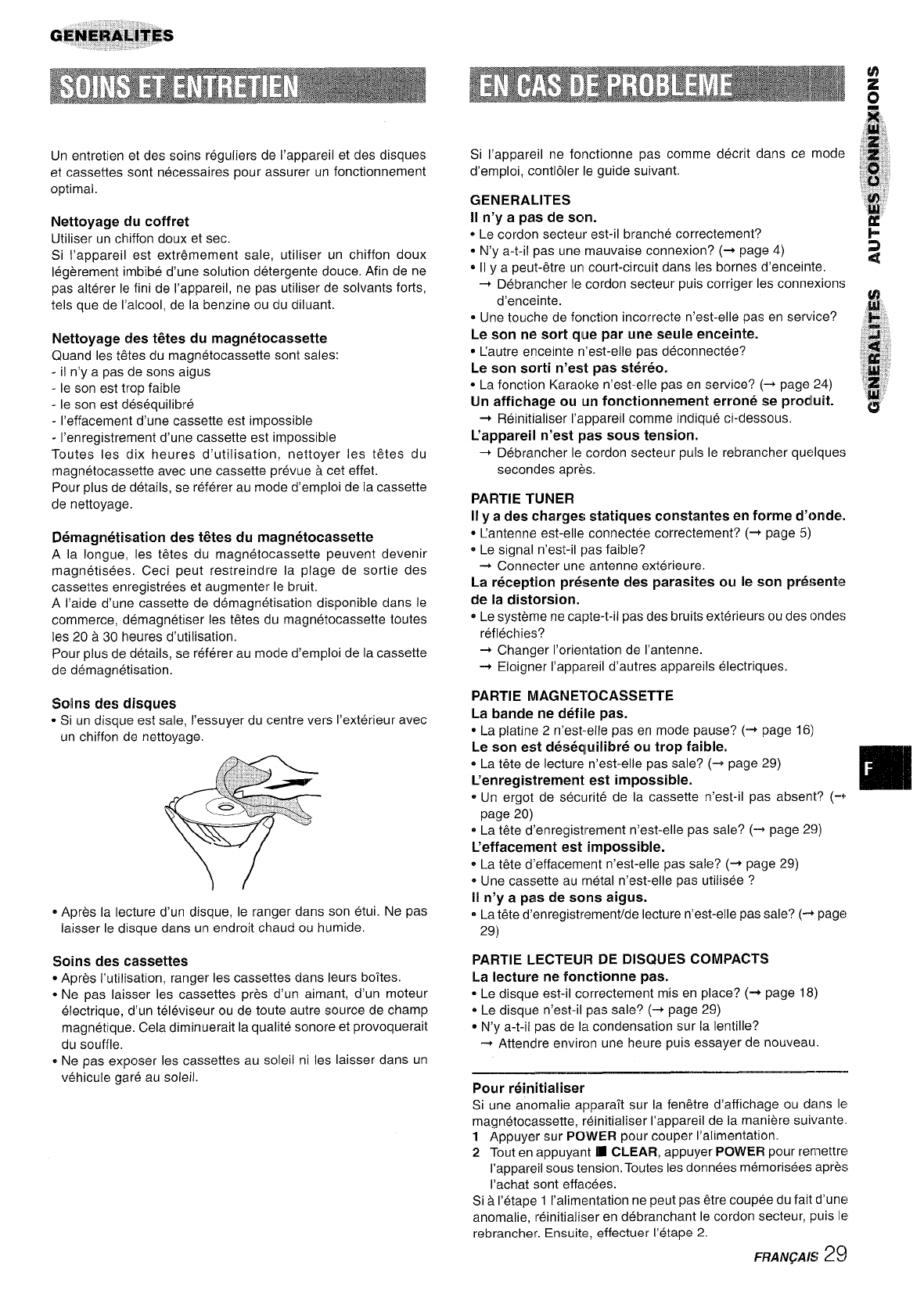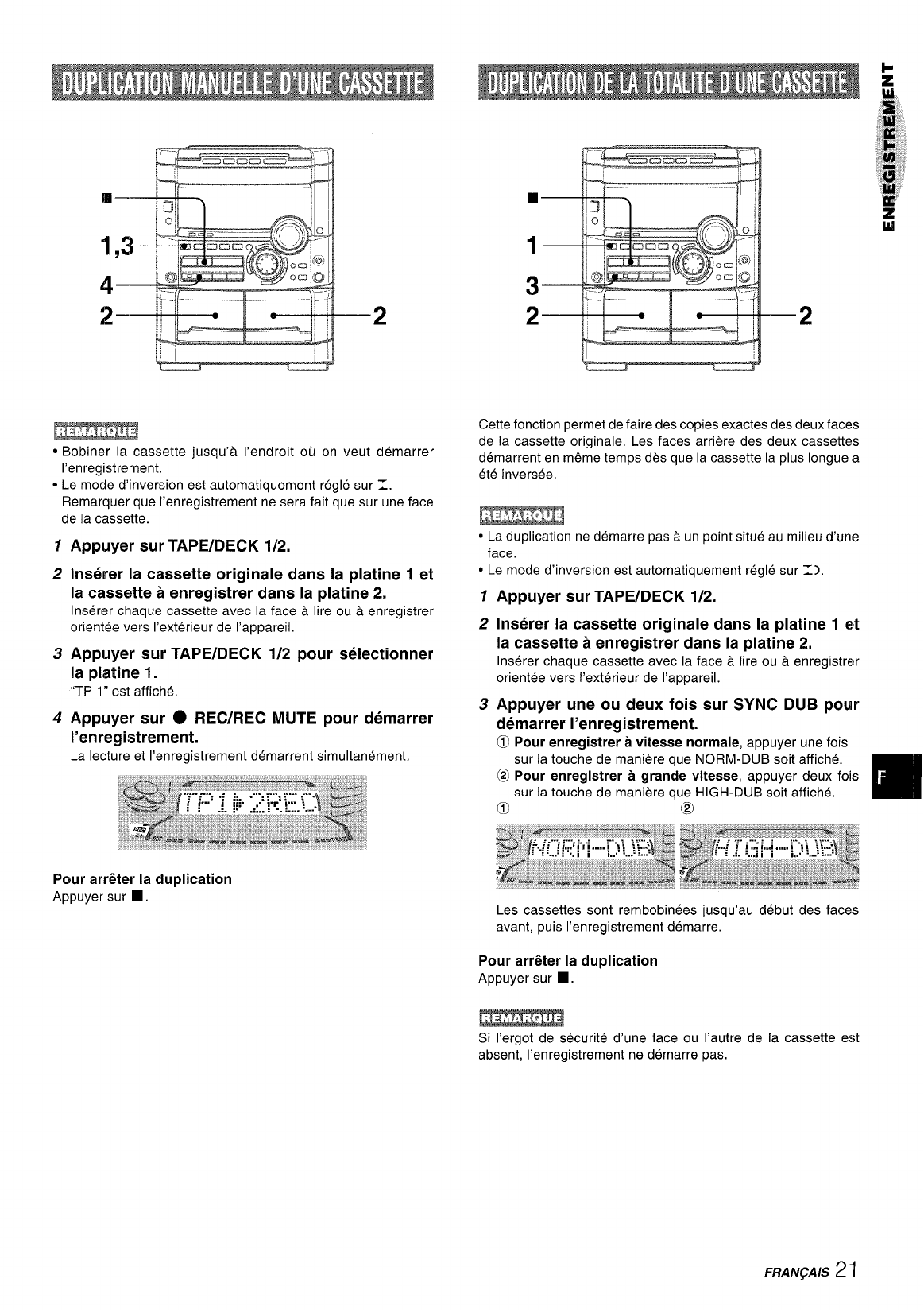 I’enregistrement de disques, de la radio ou de cassettes clans Ie