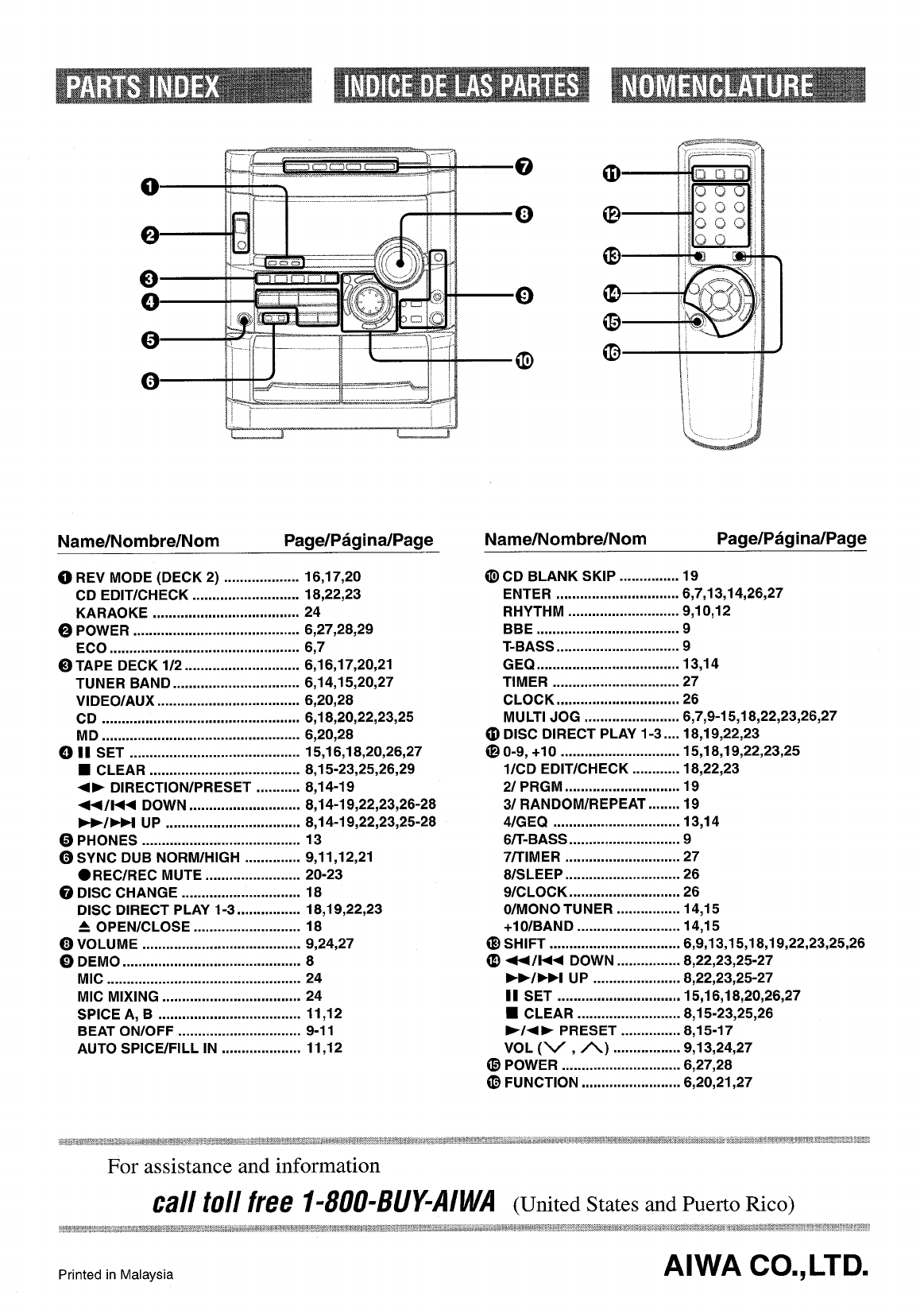 Printed in Malaysia AIWA CO.,LTD.