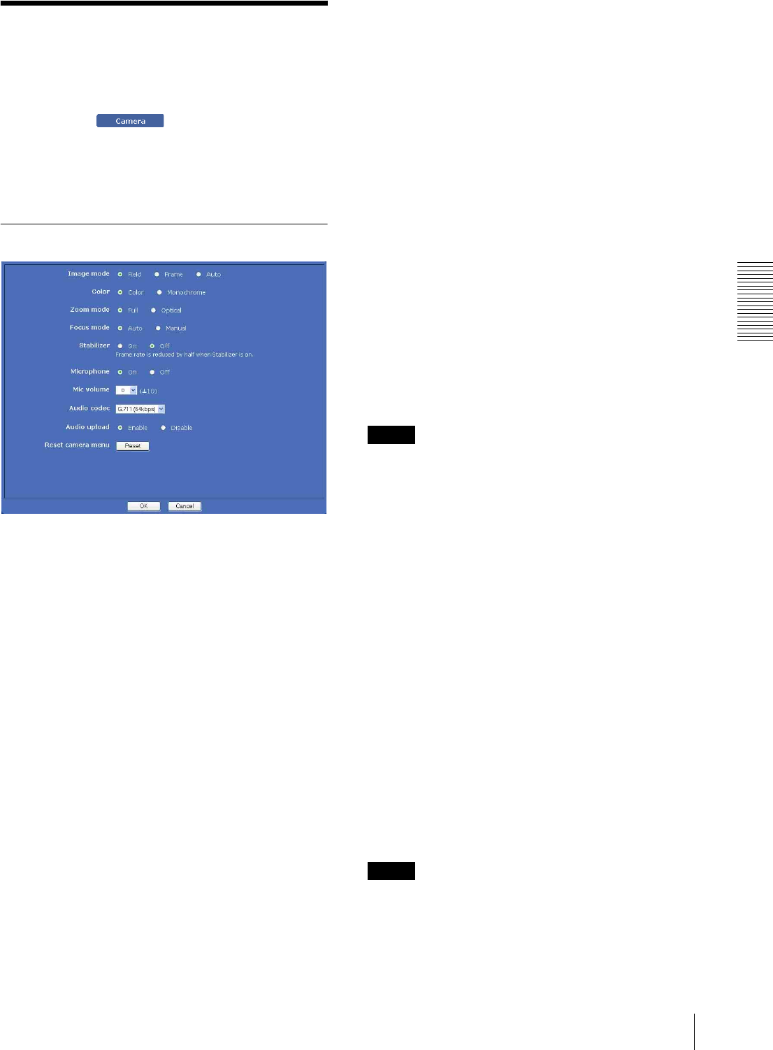 - Setting the Camera Image and Audio - Camera Menu