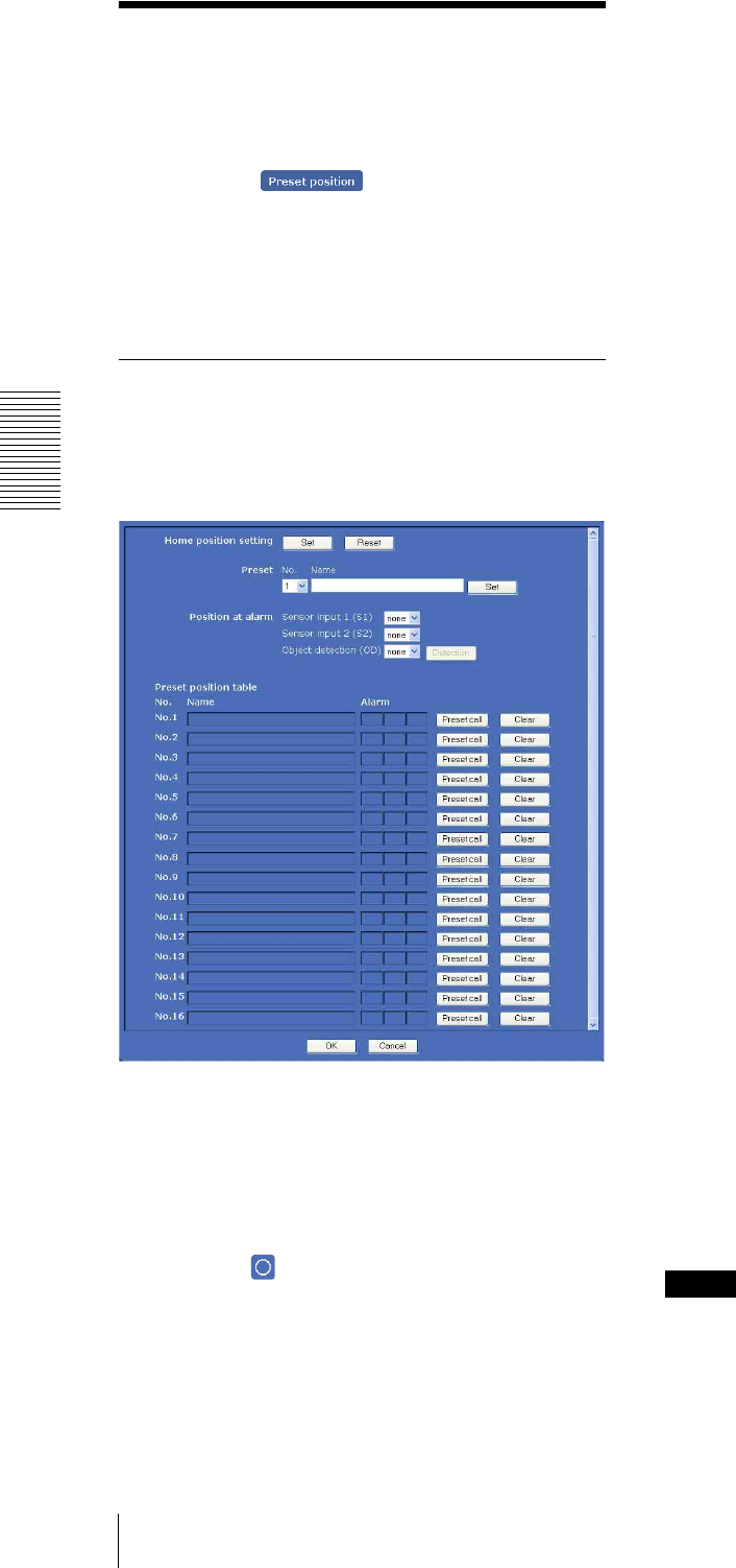 - Saving the Camera Position and Action - Preset position Menu