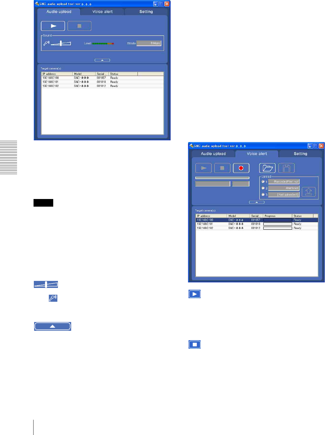 - Using the SNC audio upload tool - Transmitting Audio to Camera