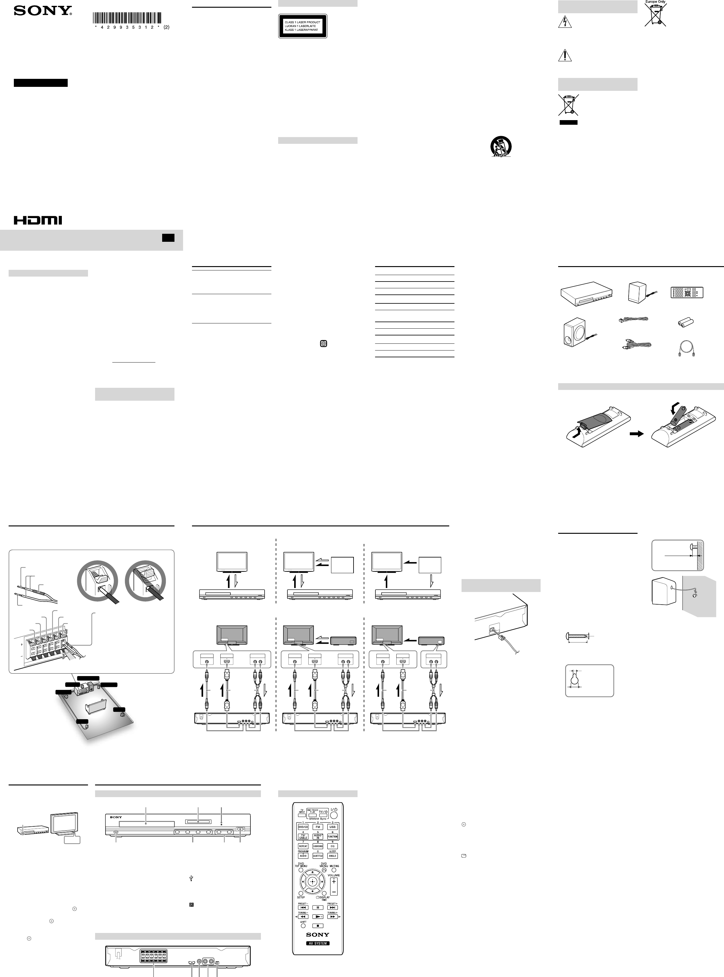 Sony Dvd Home Theatre System Dav Tz140 Users Manual