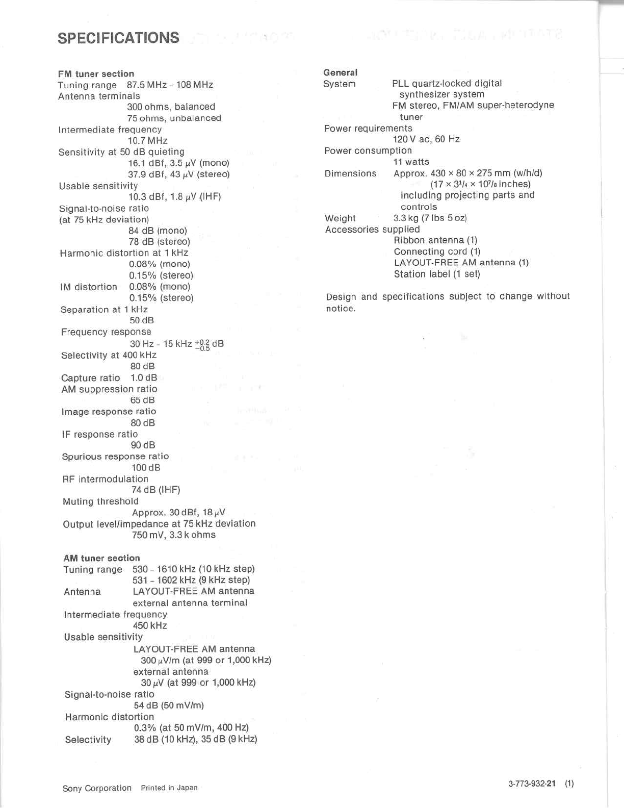 User manual STJX410 Sony ST-JX410 FM/AM Tuner User Manuals and Instruction Guides