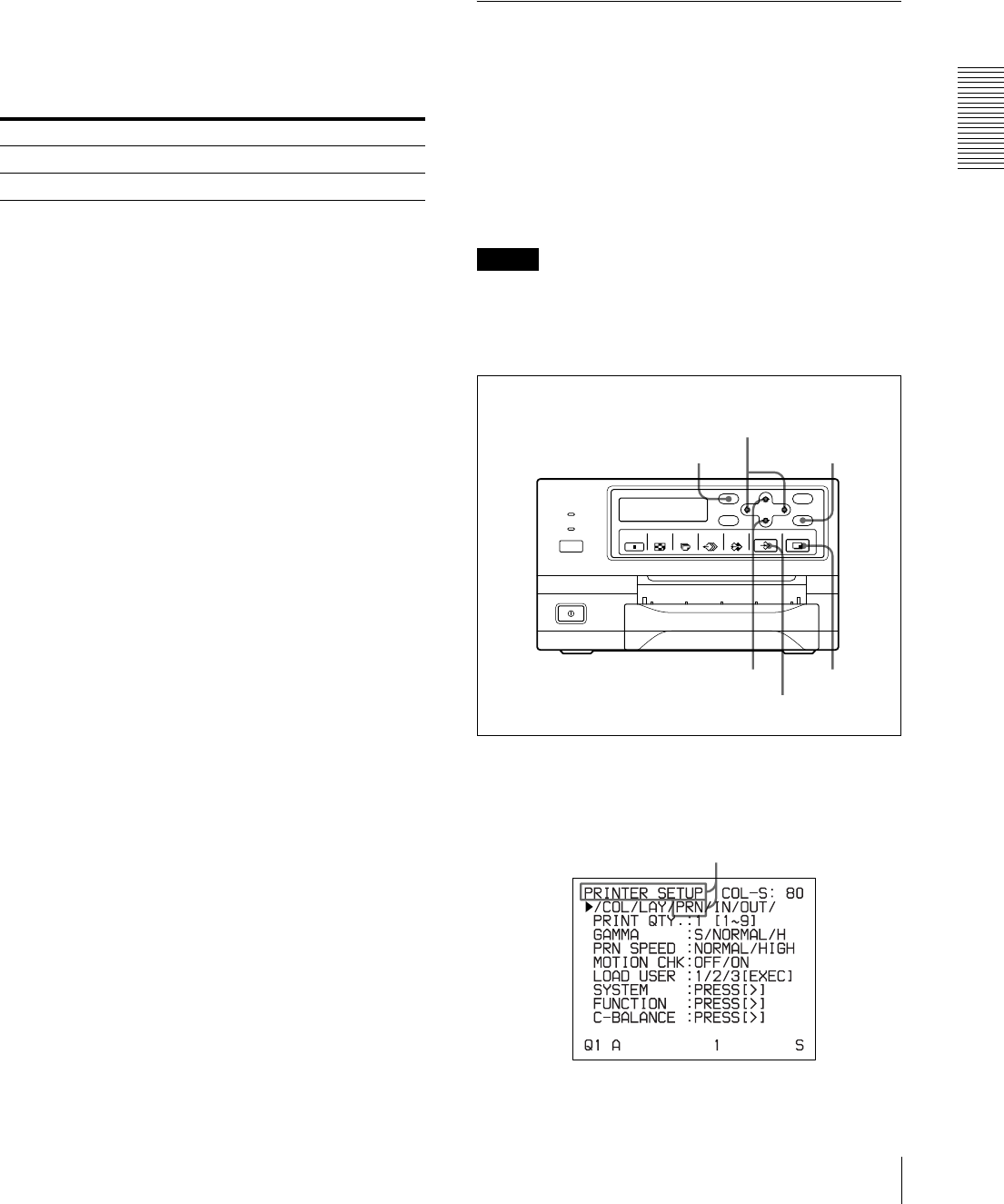 Setting up the printer on the menu