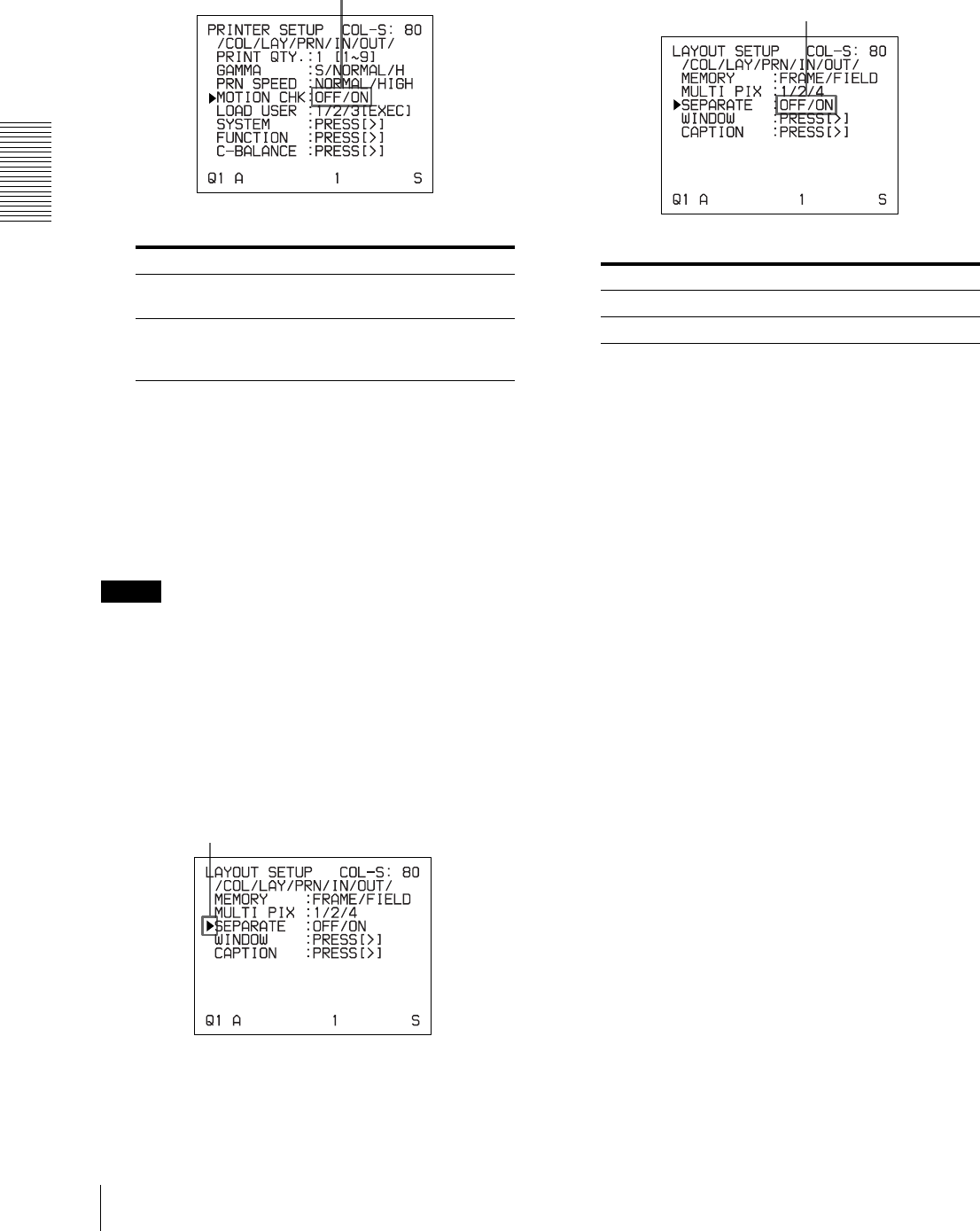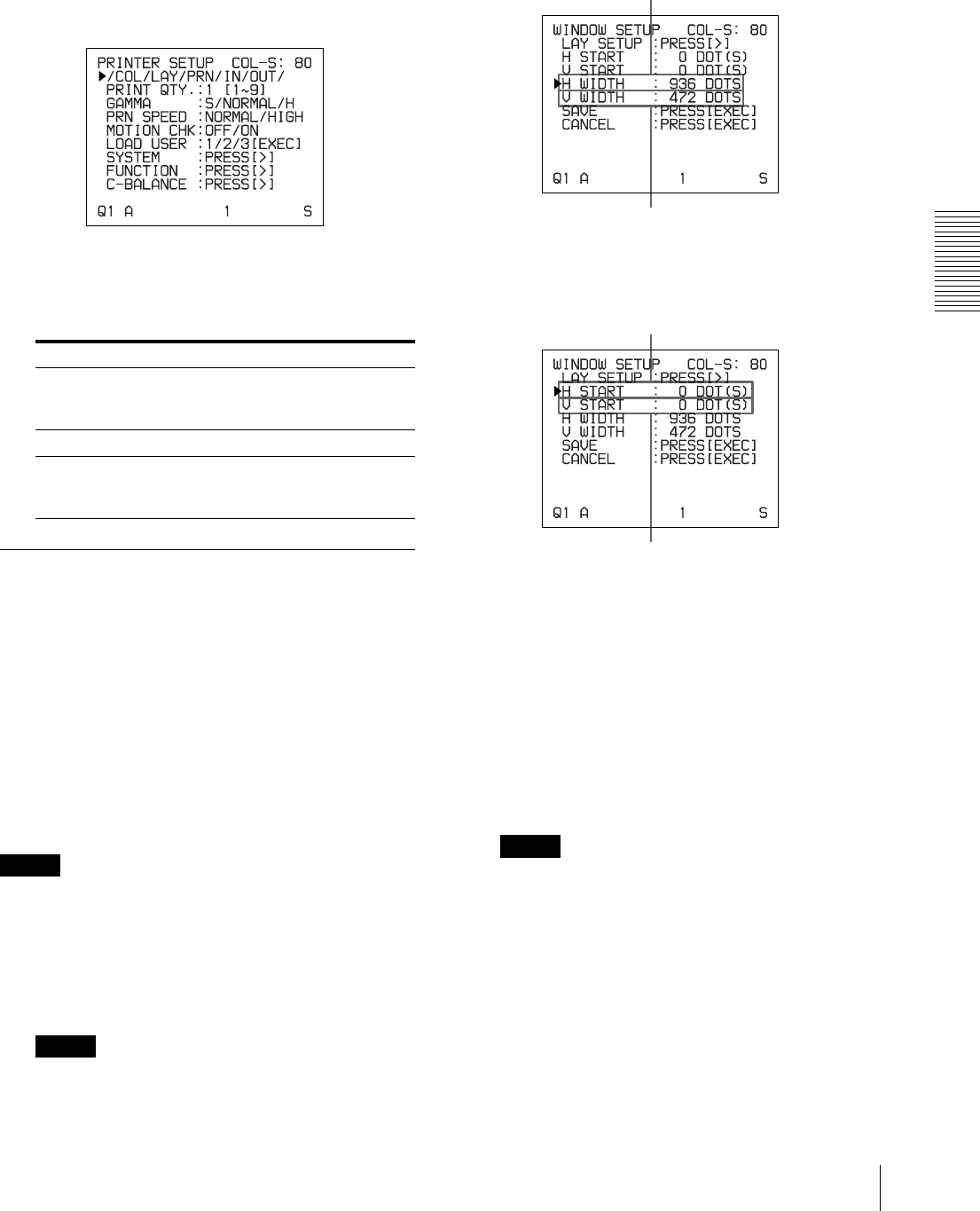 WINDOW SETUP menu 47