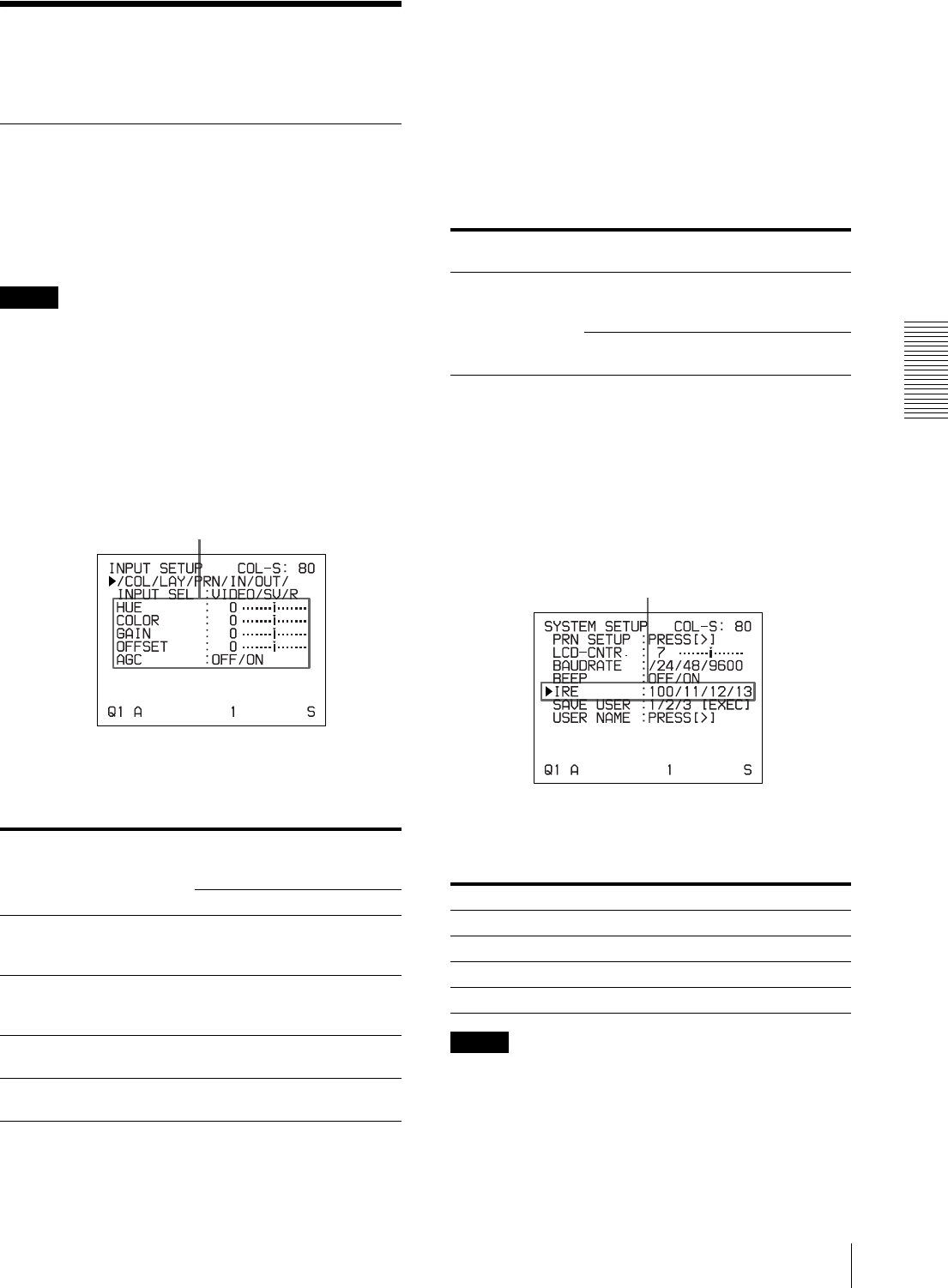 SYSTEM SETUP menu 43, 53, 54