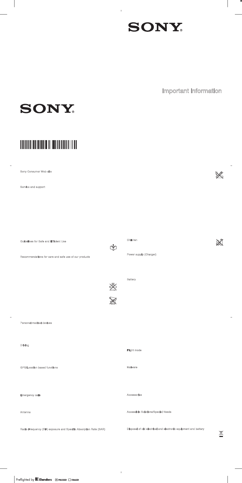 Sony Mobile Communications Inc BLUETOOTH + DTS/UNII a/b/g/n/ac. ANT+ & NFC A7 12P 3x2 indd