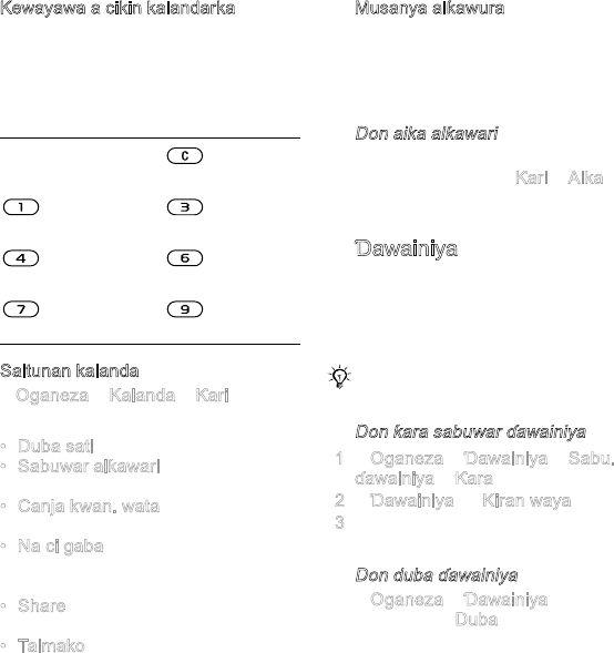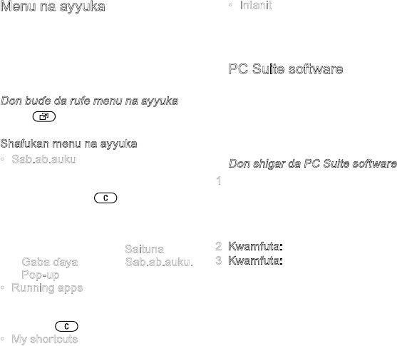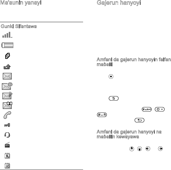 Maɓallai,menus,kewayawa,gumaka,