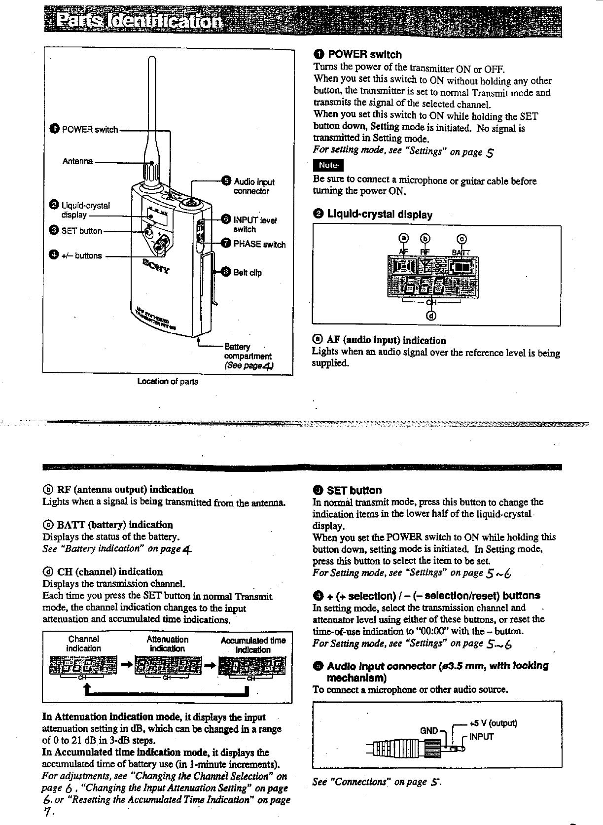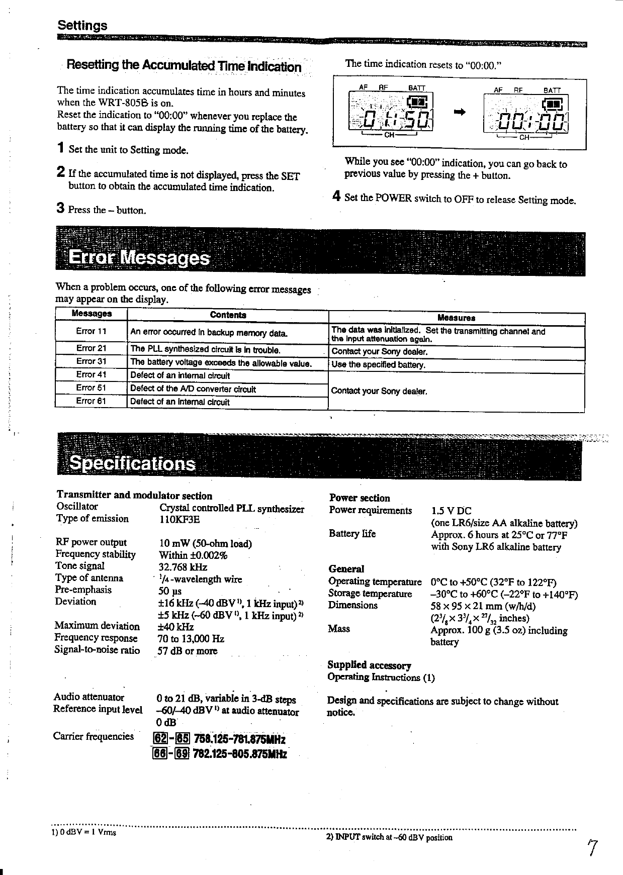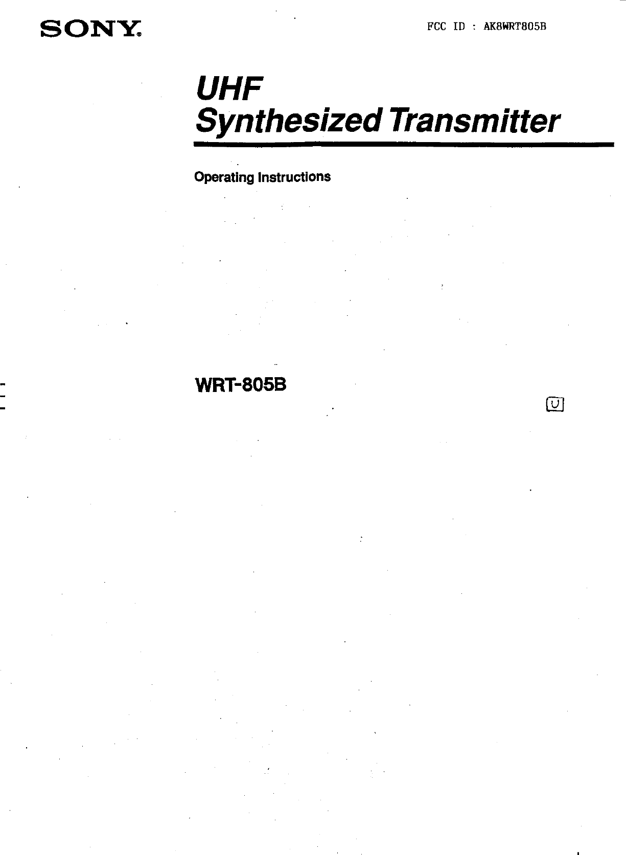 Sony WRT805B UHF Synthesized Transmitter User Manual Exhibit E Operating Instructions