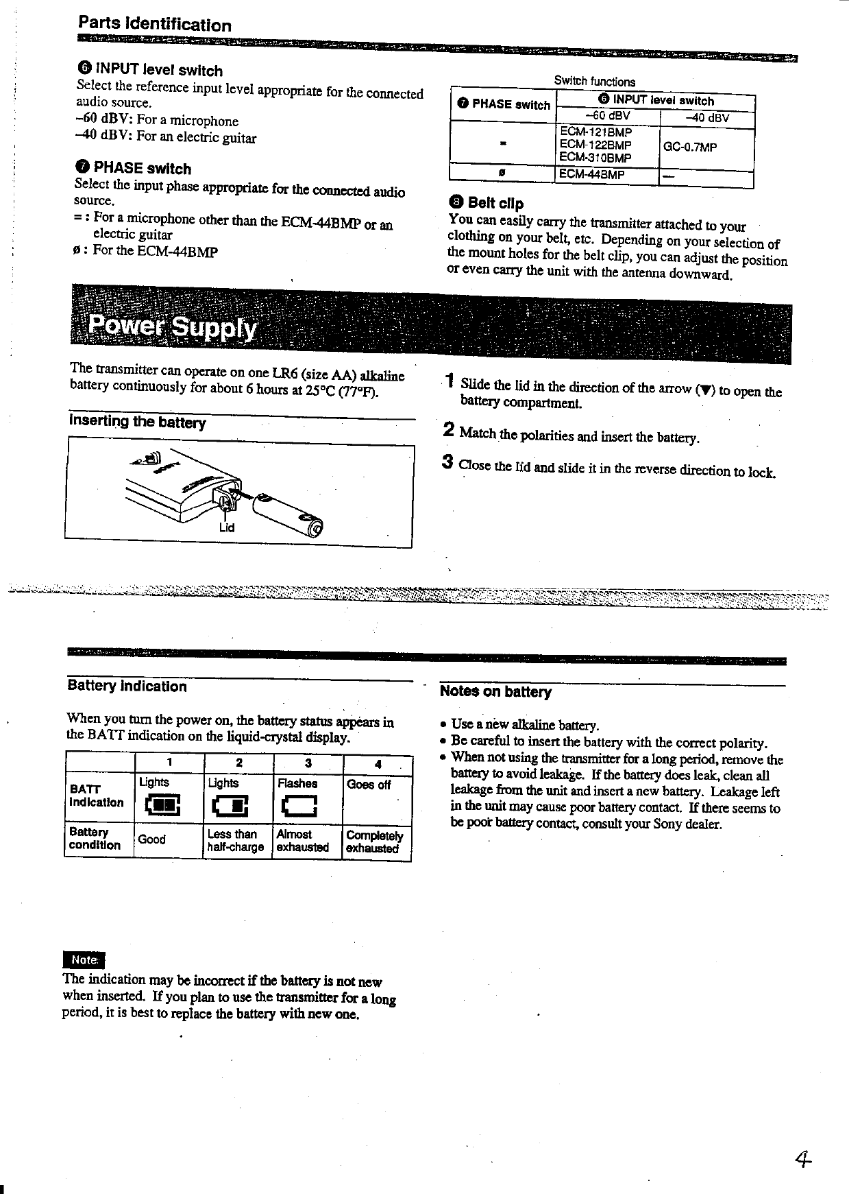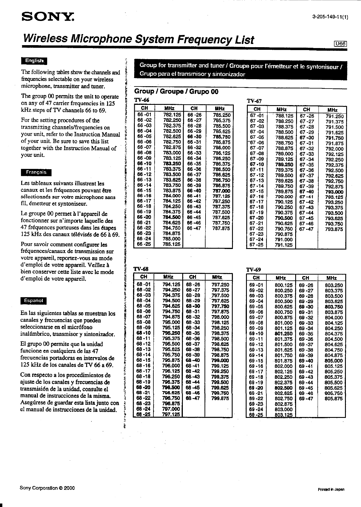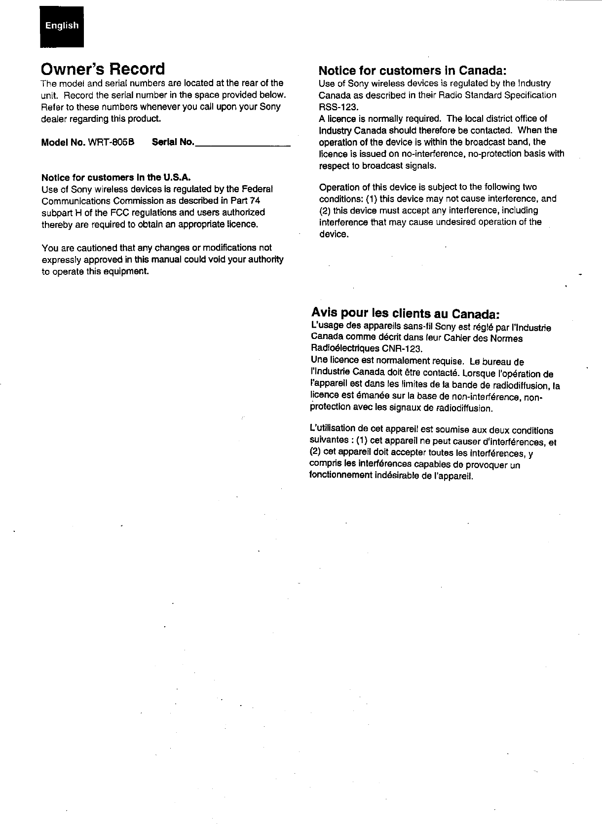 Sony WRT805B UHF Synthesized Transmitter User Manual Exhibit E Operating Instructions