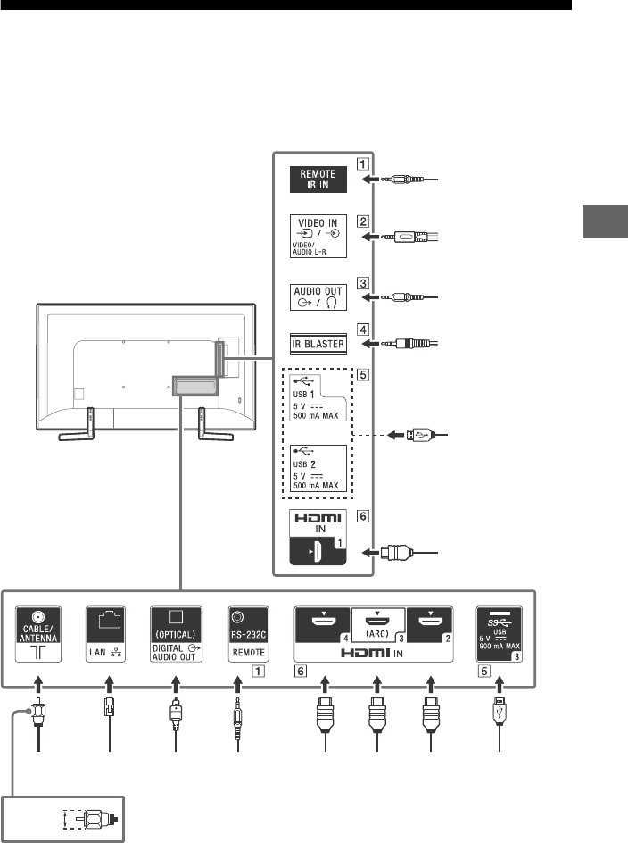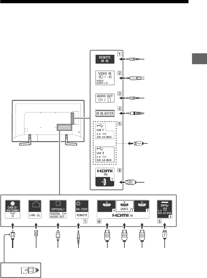 located on the rear of the TV.